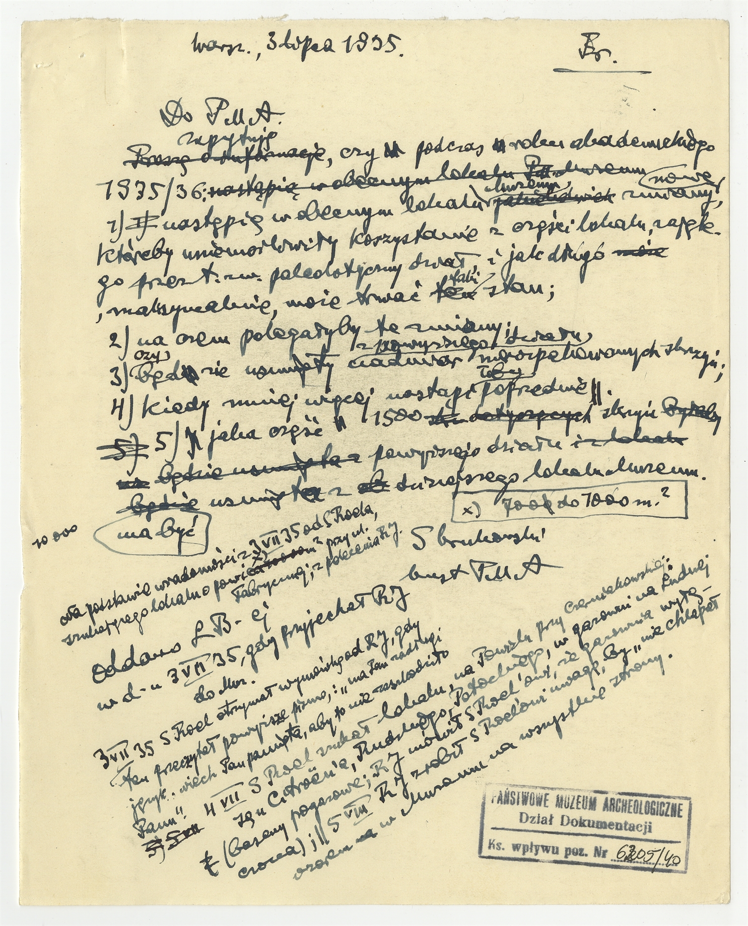 Rękopis-brudnopis pisma prof. Stefana Krukowskiego skierowanego do PMA z dnia 3 lipca 1935 r.