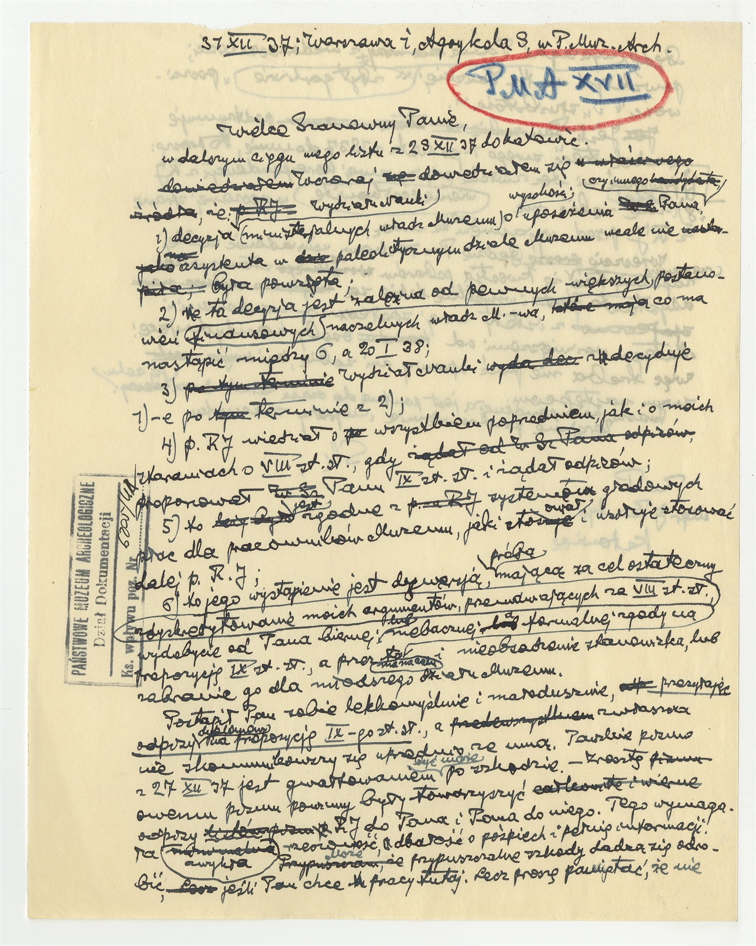 Rękopis-brudnopis pisma prof. Stefana Krukowskiego z 31 XII [19]37 r. skierowanego do Jana Bartysa: "[…] w dalszym ciągu mego listu z 29 XII 37 do Katowic […]"