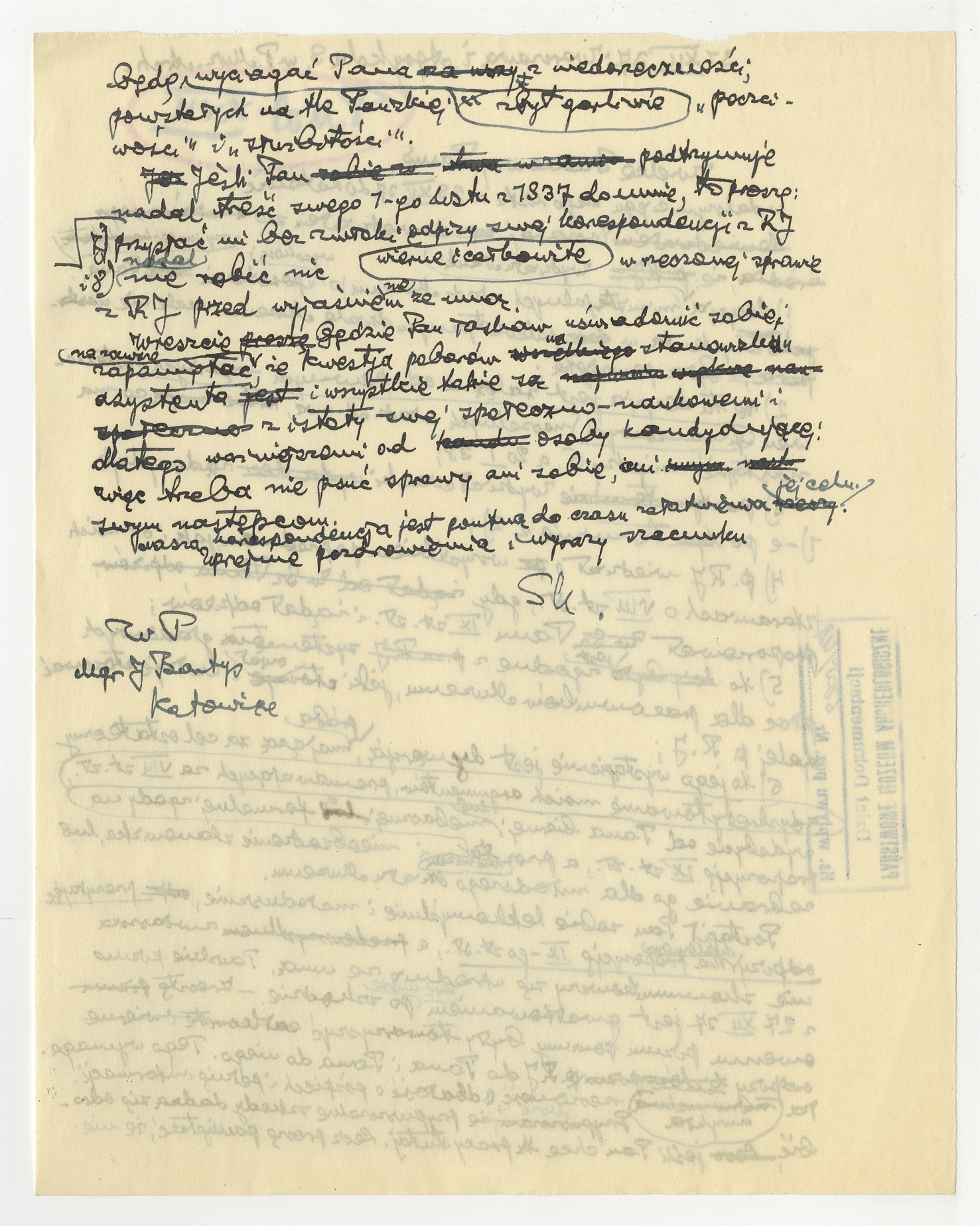Rękopis-brudnopis pisma prof. Stefana Krukowskiego z 31 XII [19]37 r. skierowanego do Jana Bartysa: "[…] w dalszym ciągu mego listu z 29 XII 37 do Katowic […]" (cd)