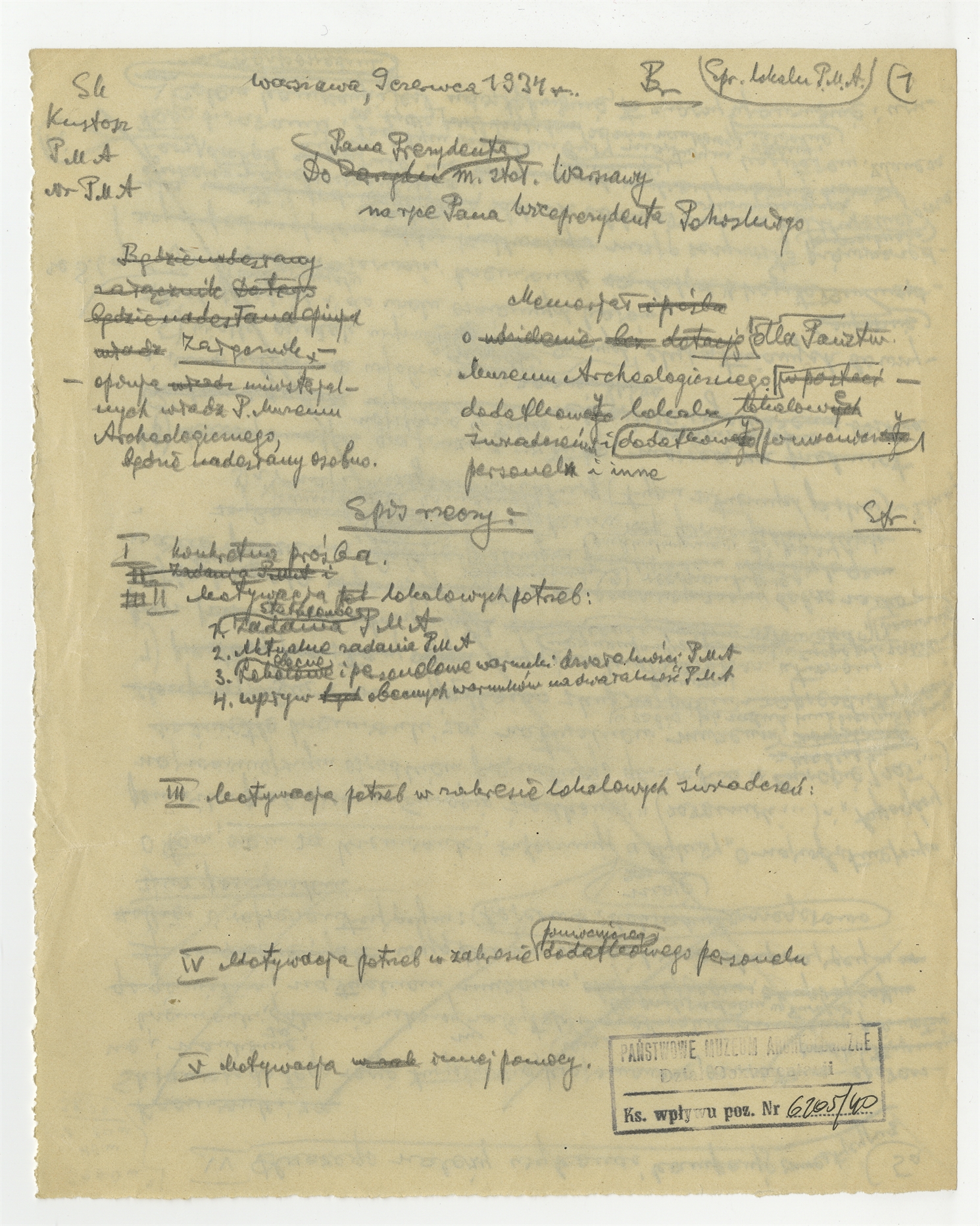 Rękopis-brudnopis pisma prof. Stefana Krukowskiego z 9 czerwca 1934 "Do Pana Prezydenta m.stoł. Warszawy na ręce Pana Wiceprezydenta Pohoskiego"