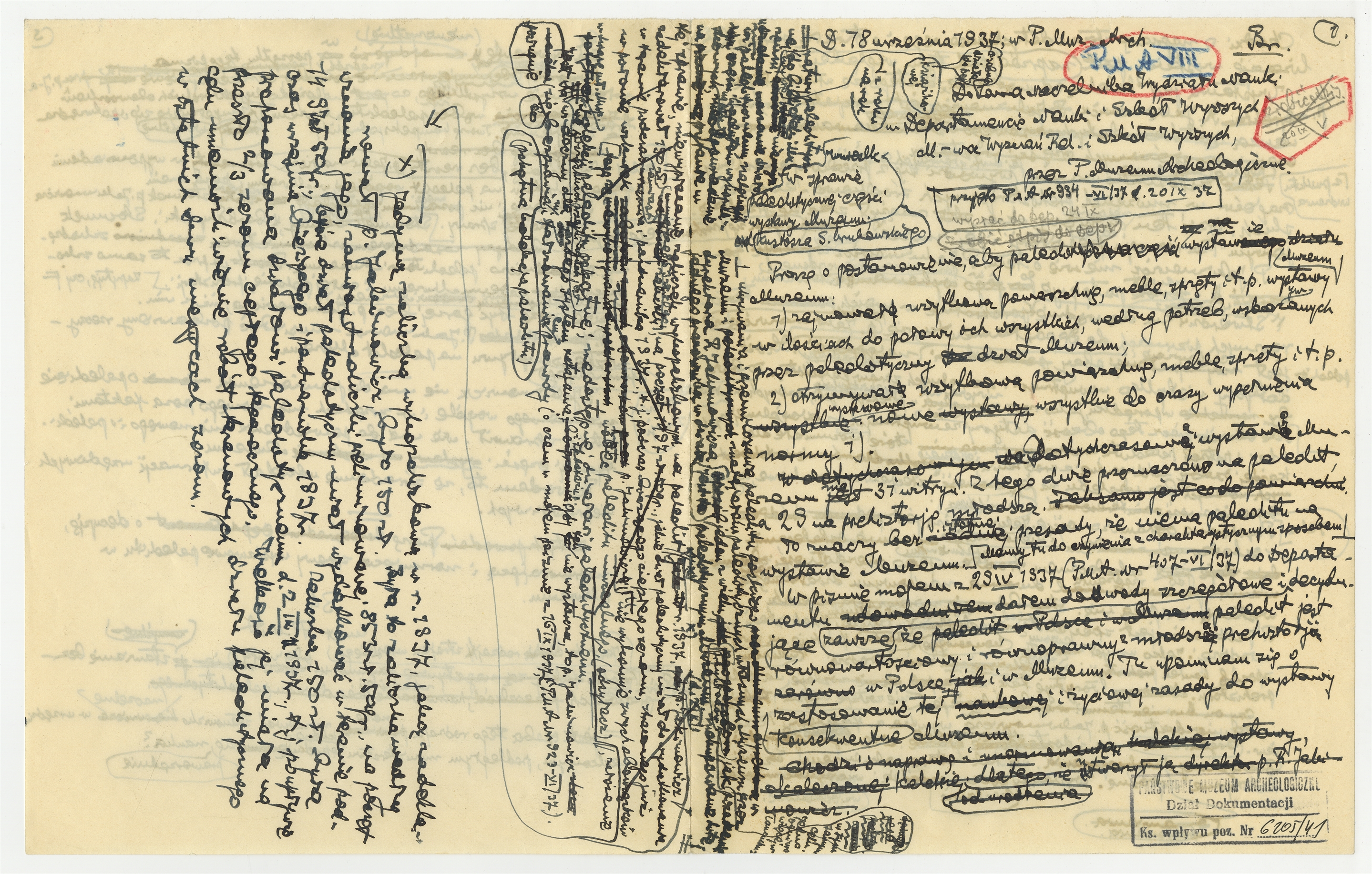 Rękopis-brudnopis pisma prof. Stefana Krukowskiego z dn. 18 września 1937 r. skierowanego do Naczelnika Wydziału Nauki w Departamencie Nauki i Szkół Wyższych Ministerstwa Wyznań Rel. i Oświecenia Publ. Pismo w sprawie "paleolitycznej części wystawy Muzeum"