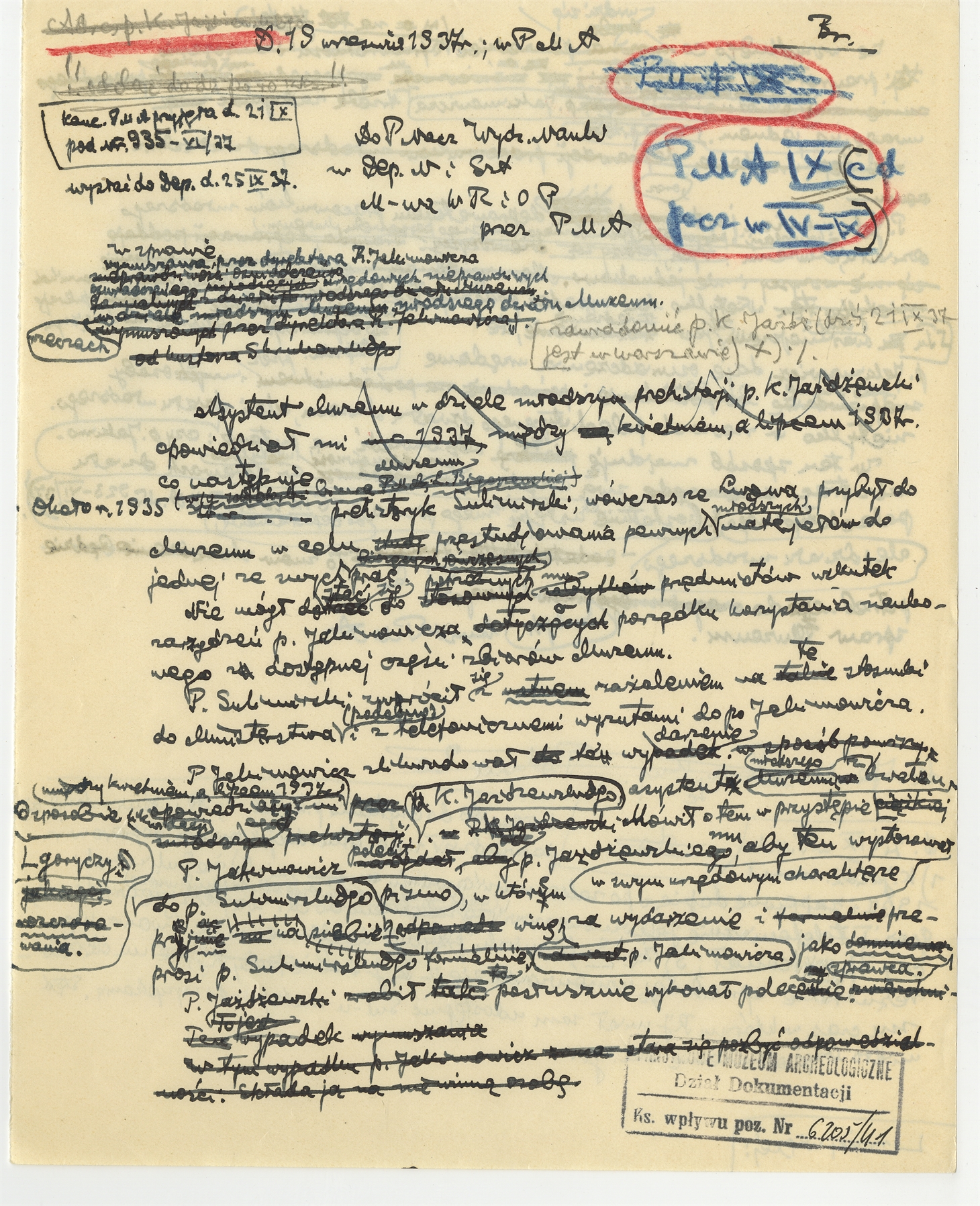 Rękopis-brudnopis pisma prof. Stefana Krukowskiego z dn. 19 września 1937 r. skierowanego do Naczelnika Wydziału Nauki w Departamencie Nauki i Sztuki Ministerstwa Wyznań Rel. i Oświecenia Publ. Pismo w sprawie "wymuszania przez dyrektora R. Jakimowicza oświadczeń urzędowych [...]"