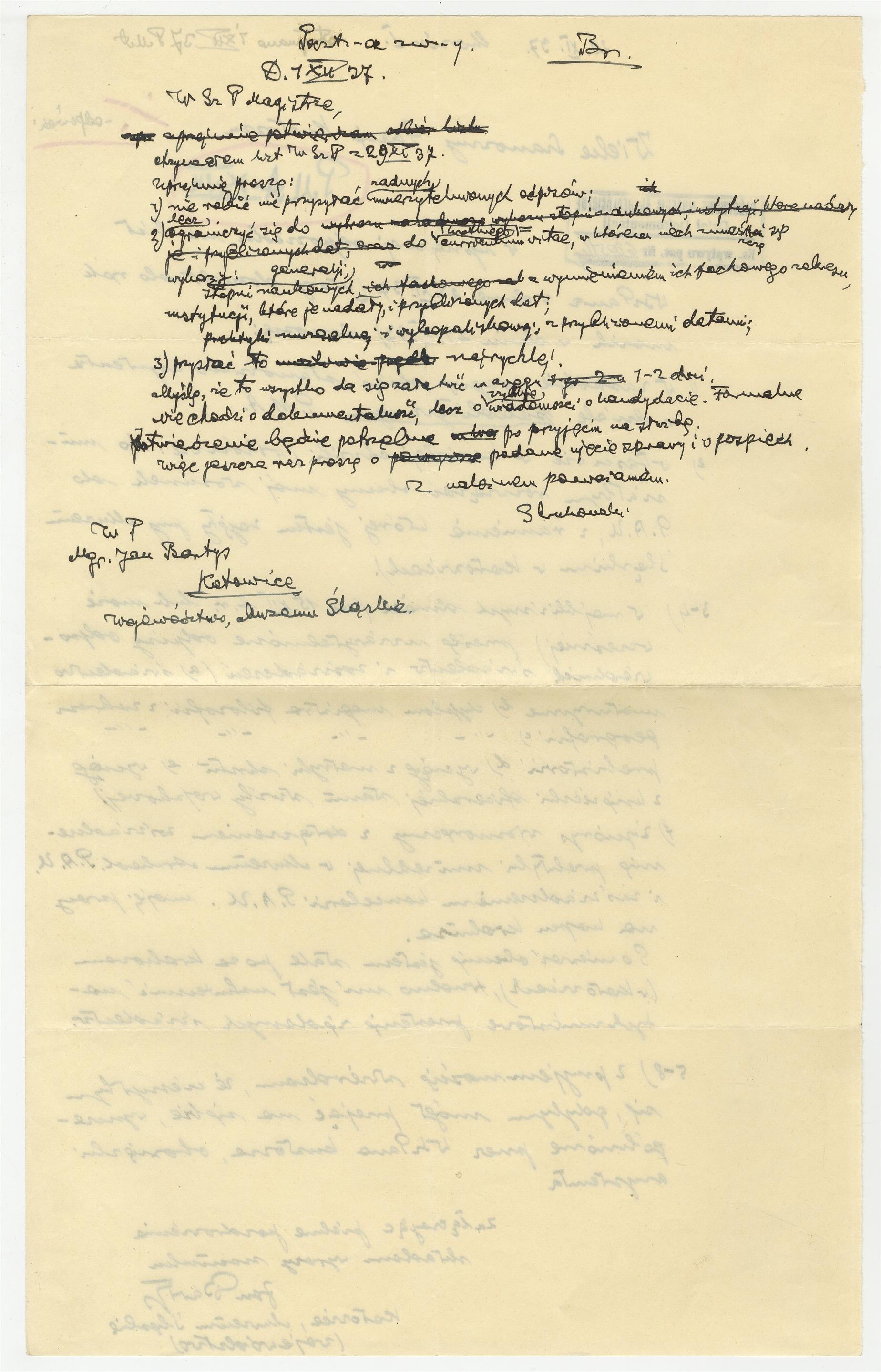 Rękopis-brudnopis pisma prof. Stefana Krukowskiego z dnia 1 grudnia [19]37 r. skierowanego do [Jana Bartysa]