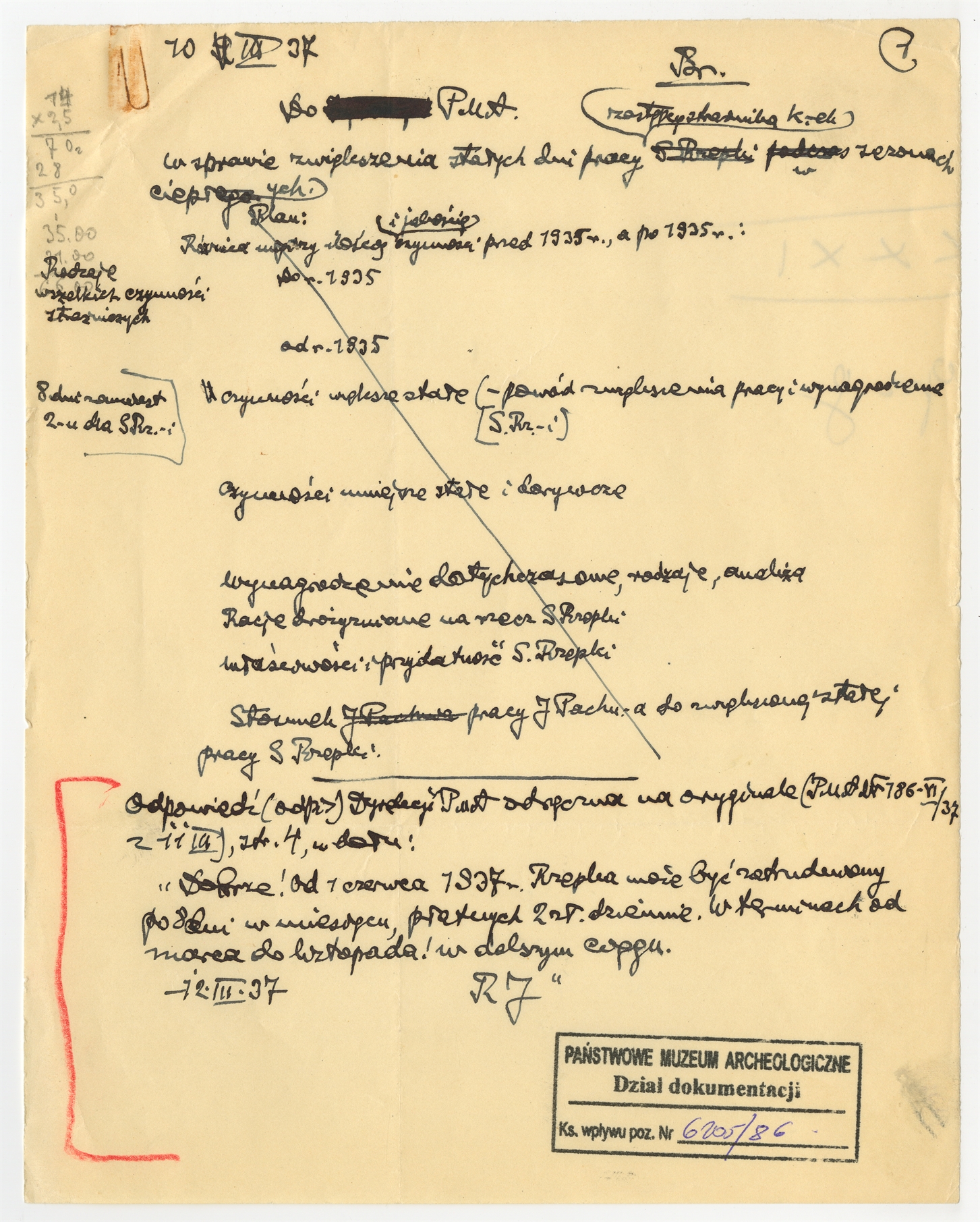 Rękopis-brudnopis pisma prof. Stefana Krukowskiego z dnia 10 III [19]37 r. skierowanego do PMA w sprawie "zwiększenia stałych dni pracy zastępcy strażnika k-ek w sezonach ciepłych …"