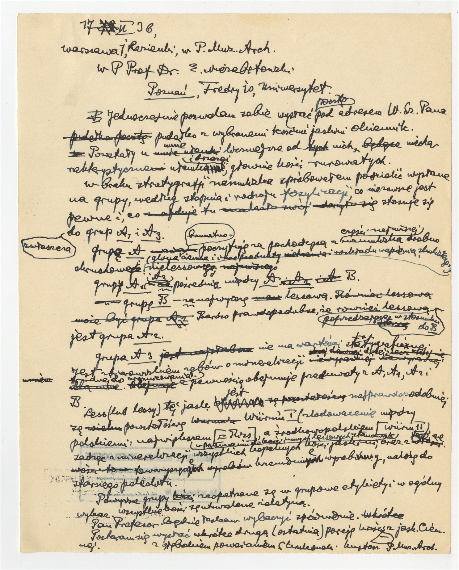 Rękopis-brudnopis pisma prof. Stefana Krukowskiego z dnia 17 II [19]36 skierowanego do prof. dr E. Niezabitowskiego