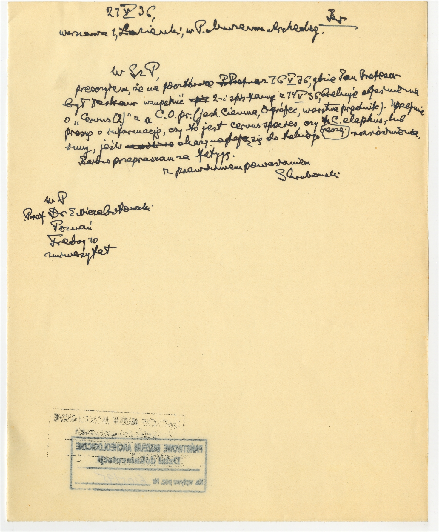 Rękopis-brudnopis pisma prof. Stefana Krukowskiego z dnia 21 V [19]36 skierowanego do prof. dr E. Niezabitowskiego: "przeoczyłem że na pocztówce …"