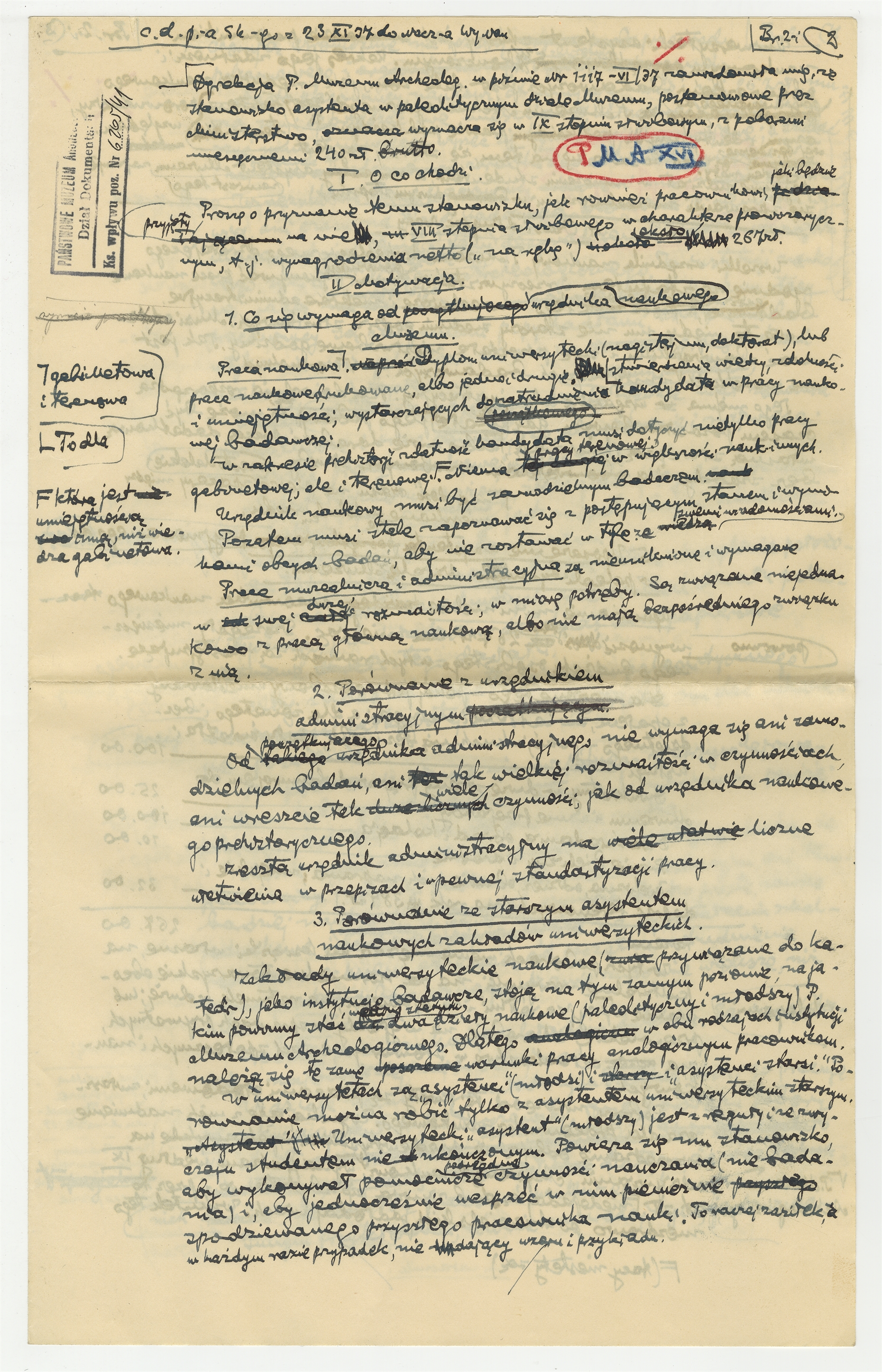 Rękopis-brudnopis pisma prof. Stefana Krukowskiego z dnia 23 listopada 1937 r. skierowanego do Naczelnika Wydziału Nauki w Departamencie Nauki i Sztuki Ministerstwa Wyzn. Rel. i Ośw. Publ. - "Wniosek kustosza S. Krukowskiego o VIII st. służbowego asystenta […]" (cd)