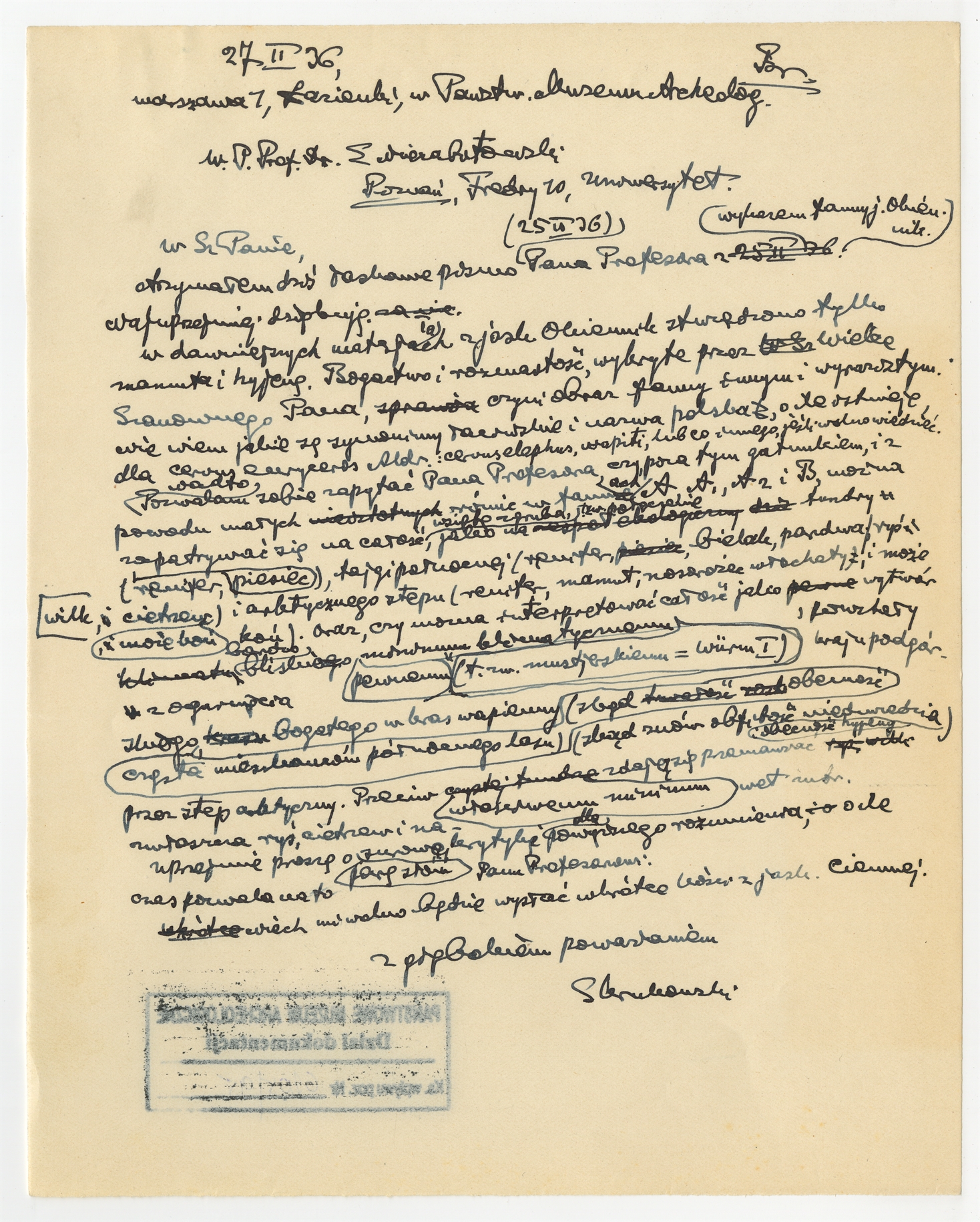 Rękopis-brudnopis pisma prof. Stefana Krukowskiego z dnia 27 II [19]36 skierowanego do prof. dr E. Niezabitowskiego