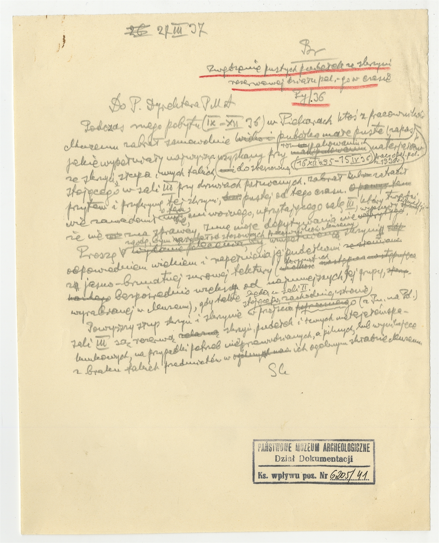 Rękopis-brudnopis pisma prof. Stefana Krukowskiego z dnia 27 III 1937 "Do P. Dyrektora PMA"