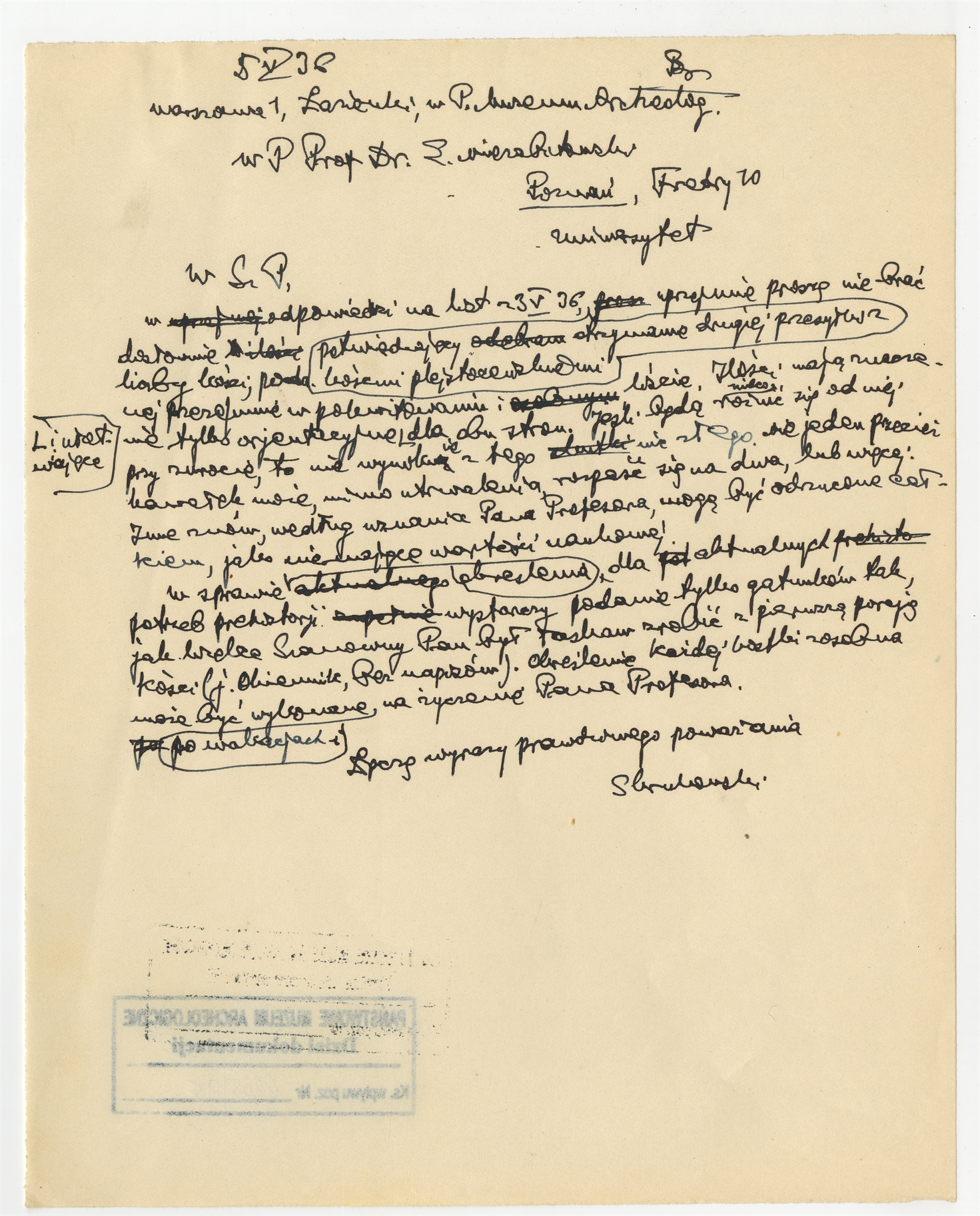 Rękopis-brudnopis pisma prof. Stefana Krukowskiego z dnia 5 V [19]36 skierowanego do prof. dr E. Niezabitowskiego: "w odpowiedzi na list z 3 V 36 …"