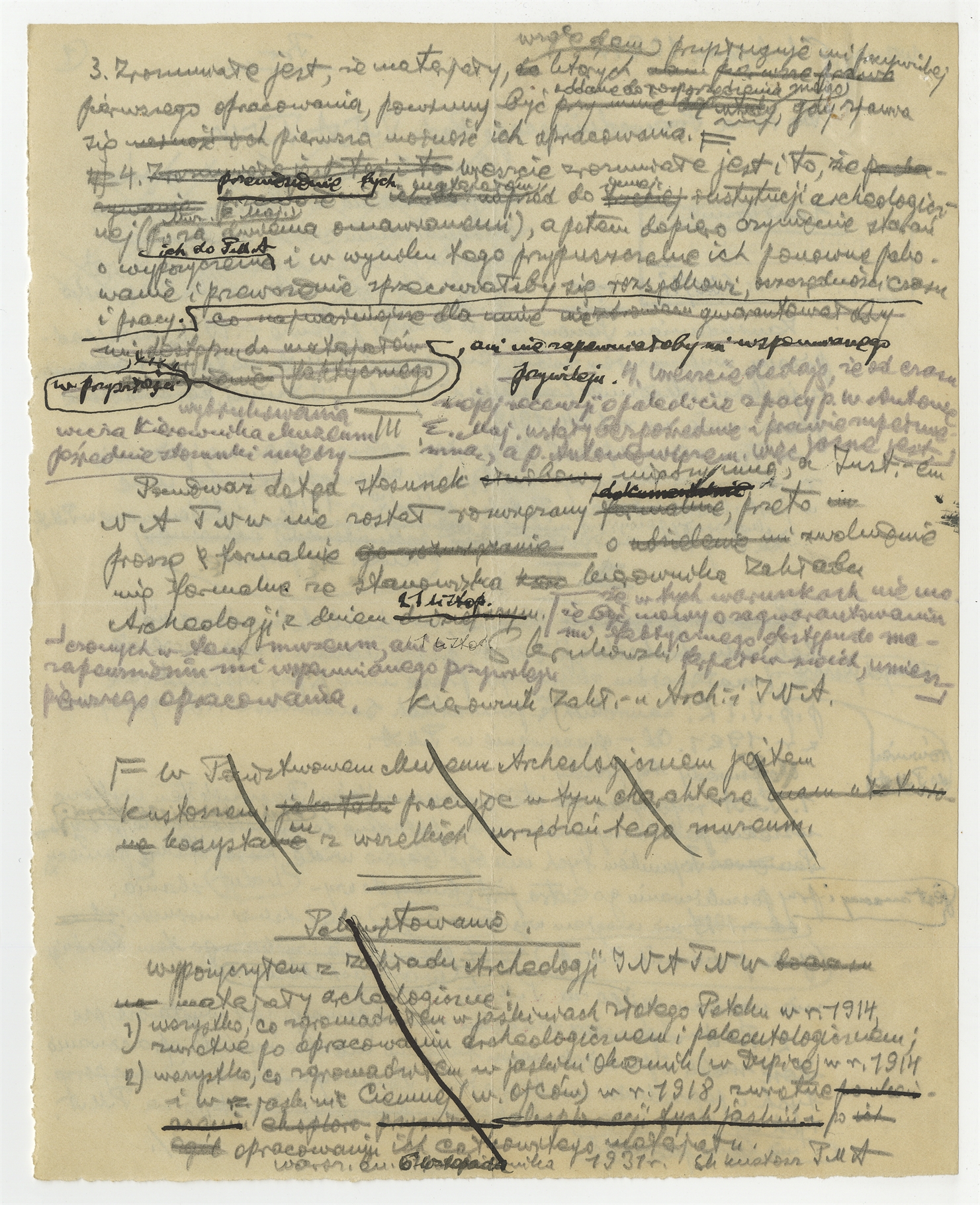 Rękopis - brudnopis pisma Stefana Krukowskiego do Przewodniczącego Rady Instytutu Nauk Antropologicznych T.N.W. z prośbą o wypożyczenie materiałów archeologicznych z badań S. Krukowskiego i L. Sawickiego w powiatach sandomierskim i biłgorajskim w 1921 r. w celu ich opracownia w Państwowym Muzeum Archeologicznym Warszawa 6 listopada 1931 - strona 2