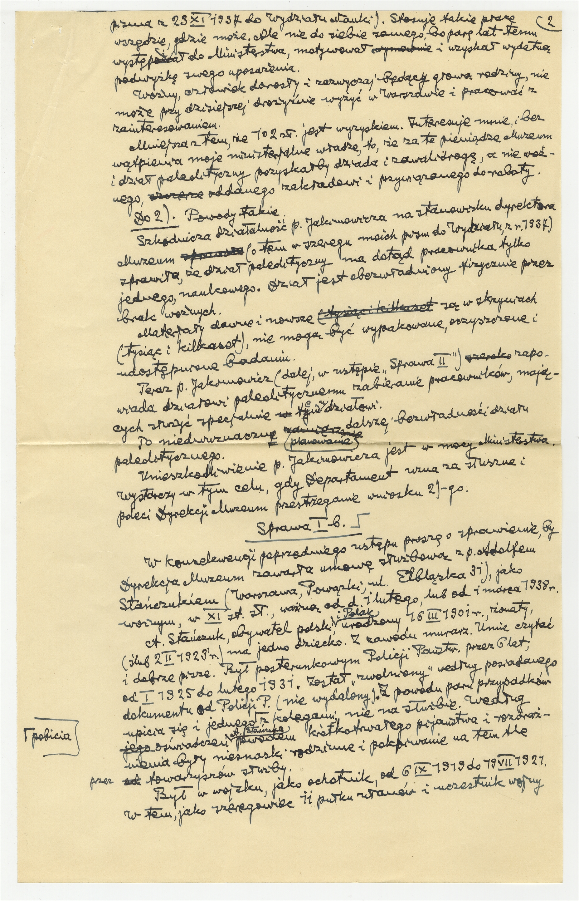 Rękopis-brudnopis pisma Stefana Krukowskiego z 18 stycznia 1938 r. skierowanego do Naczelnika Wydziału Nauki i Sztuki Ministerstwa Wyzn. Rel. i Oświec. Publ. Pismo w sprawie "[…] uruchomienia paleolitycznego działu Muzeum" (cd)