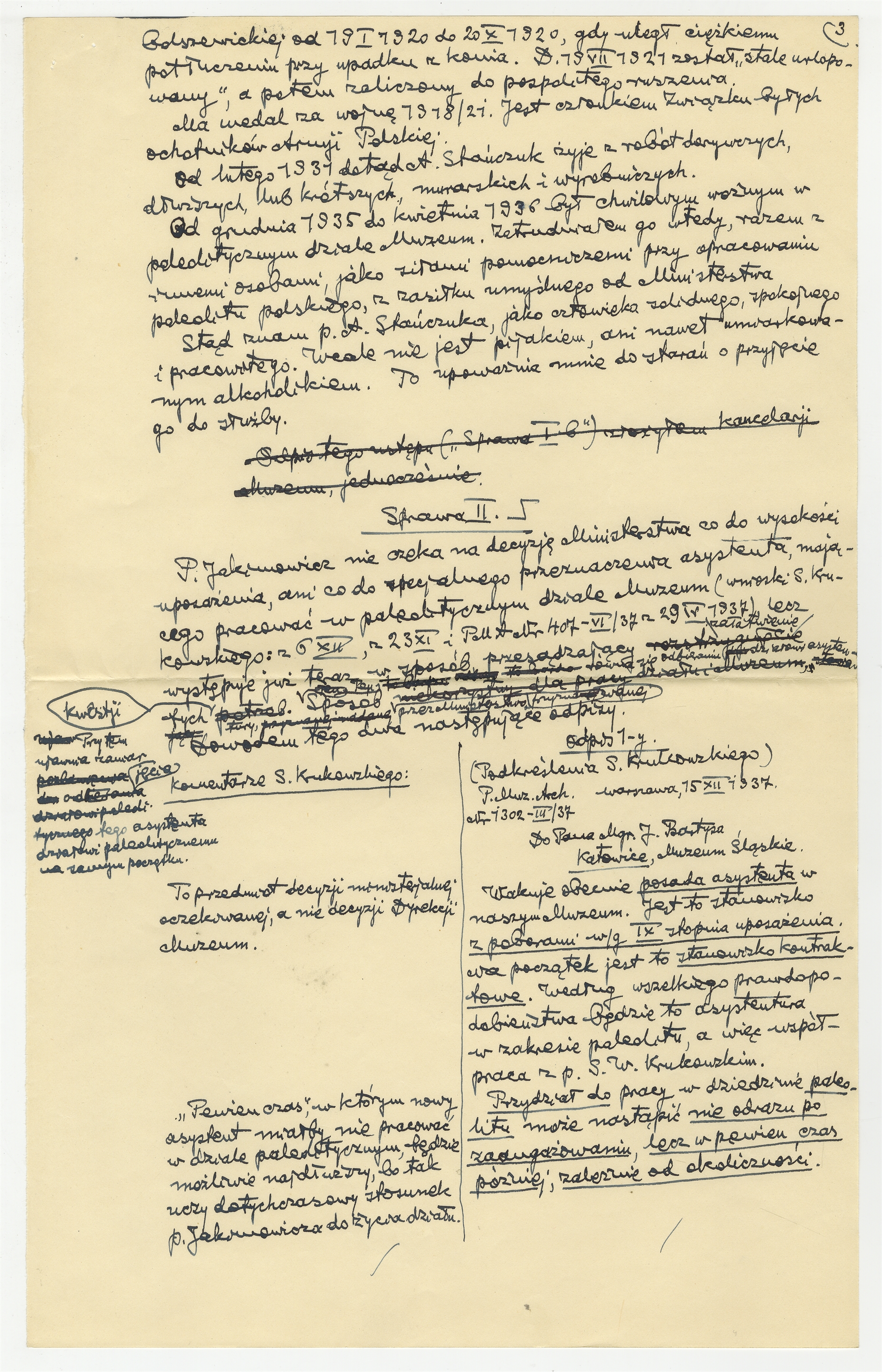 Rękopis-brudnopis pisma Stefana Krukowskiego z 18 stycznia 1938 r. skierowanego do Naczelnika Wydziału Nauki i Sztuki Ministerstwa Wyzn. Rel. i Oświec. Publ. Pismo w sprawie "[…] uruchomienia paleolitycznego działu Muzeum" (cd)