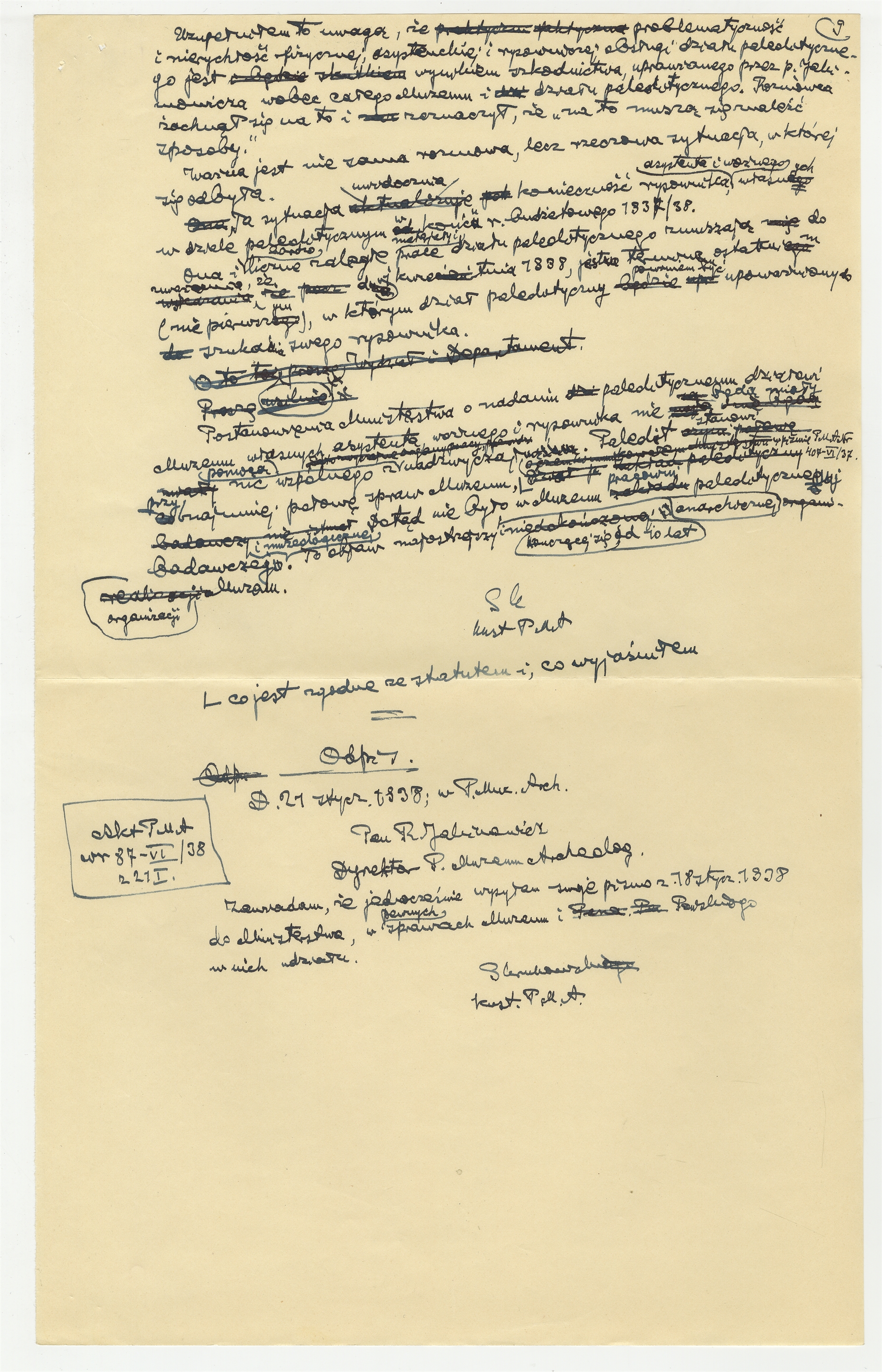 Rękopis-brudnopis pisma Stefana Krukowskiego z 18 stycznia 1938 r. skierowanego do Naczelnika Wydziału Nauki i Sztuki Ministerstwa Wyzn. Rel. i Oświec. Publ. Pismo w sprawie "[…] uruchomienia paleolitycznego działu Muzeum" (cd)