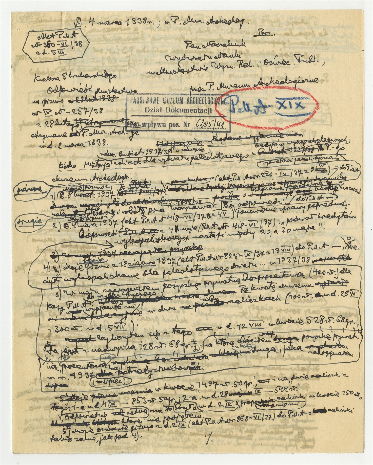 Rękopis-brudnopis pisma Stefana Krukowskiego z 4 marca 1938 r. skierowanego do Naczelnika Wydziału Nauki w Ministerstwie Wyznań Religijnych i Oświecenia Publicznego. Pismo w sprawie: "Odpowiedź na pismo Ministerstwa Nr IV N-257/38 z 28 lutego […]"