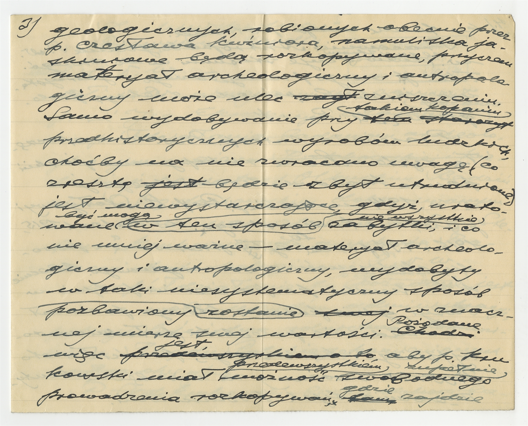 Rękopis - brudnopis pisma TNW do Ministerstwa Przemysłu i Handlu w sprawie wsparcia w badaniach archeologicznych w powiatach olkuskim będzińskim i częstochowskim. Strona 3