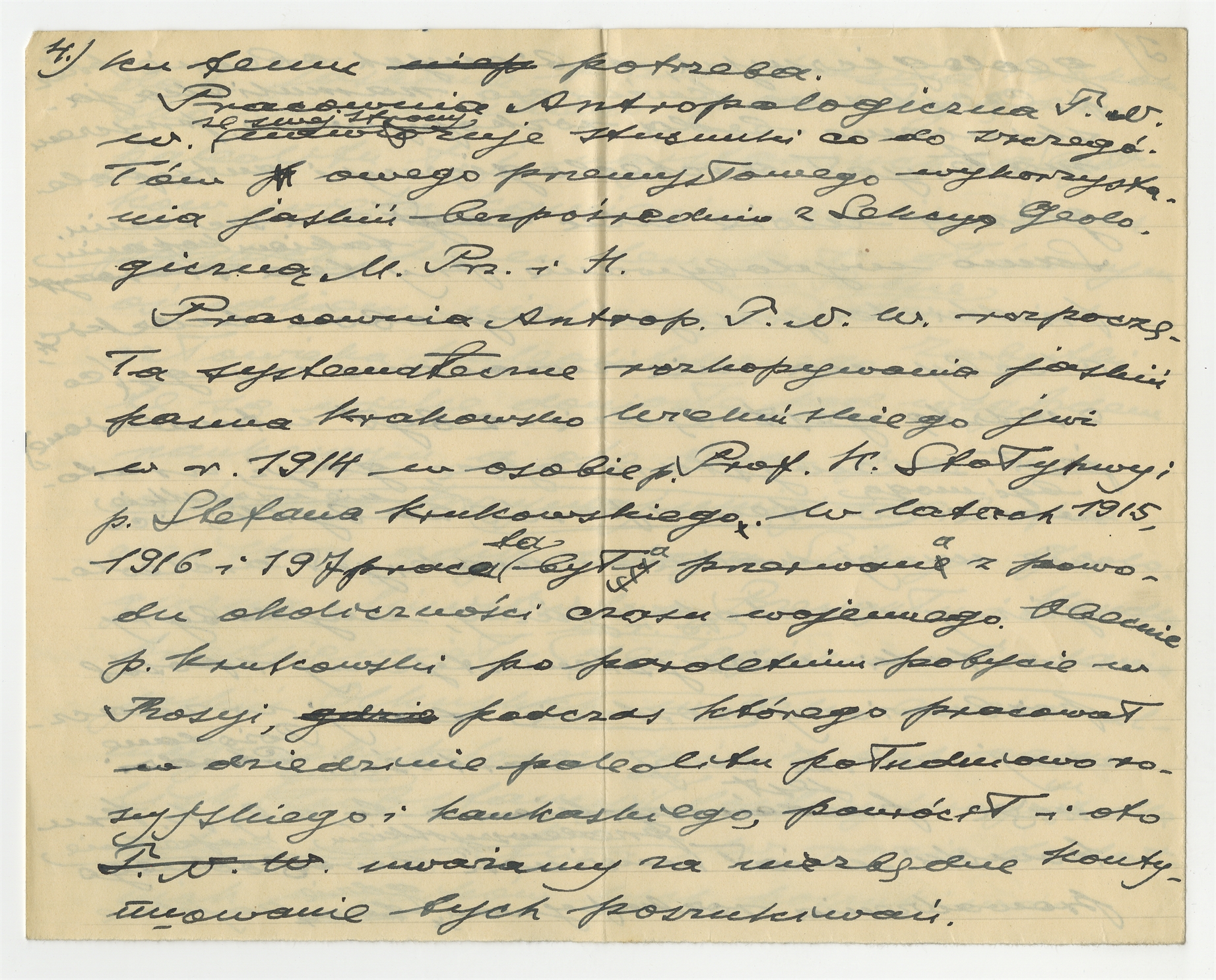 Rękopis - brudnopis pisma TNW do Ministerstwa Przemysłu i Handlu w sprawie wsparcia w badaniach archeologicznych w powiatach olkuskim będzińskim i częstochowskim. Strona 4