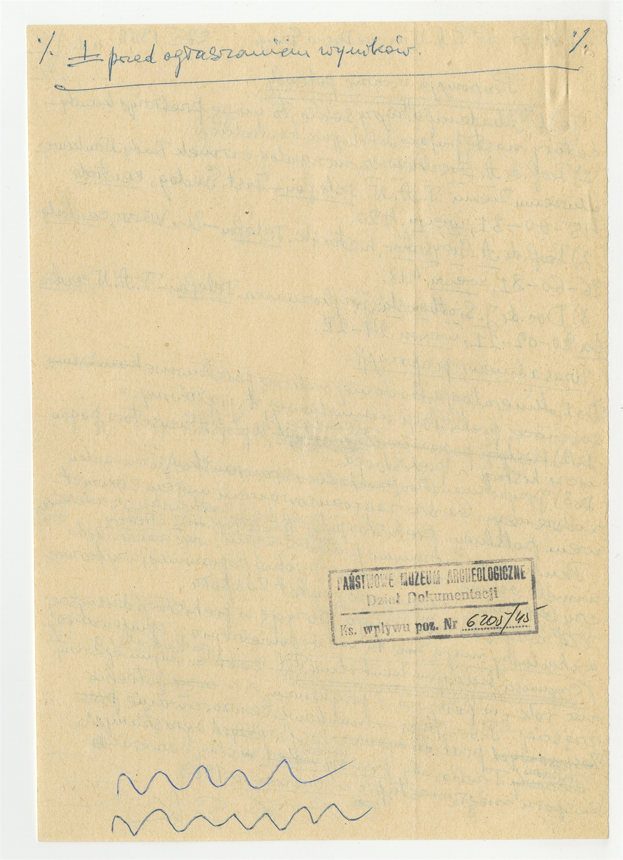 Rękopis - brudnopis pisma Zespołu Krukowskiego przy Muzeum Ziemi PAN do Dyrektora Generalnego PAN - doc. dr W. Zielenkiewicza w sprawie wniosku o wyznaczenie trzech uczonych do kolegium zajmującego się naukową kontrolą działań Zespołu (Krukowskiego) - strona 3: zawiera krótką notkę "? przed ogłoszeniem wyników" (bez numeru autorskiej strony)