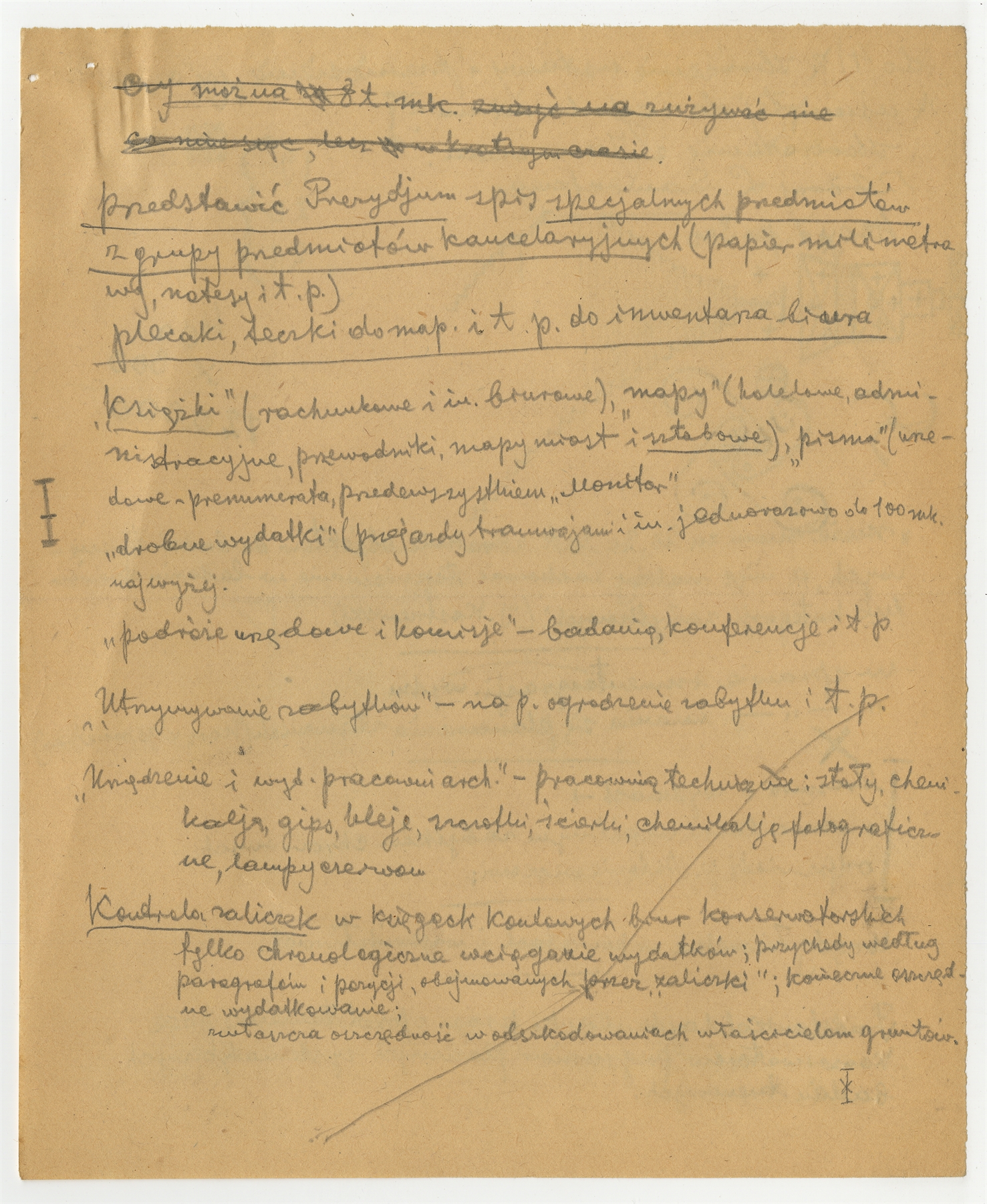 Rękopis - brudnopis planu konferencji Państwowego Grona Konserwatorów Zabytków Przedhistorycznych w Poznaniu dnia 11 marca 1922 r. - strona 3: "Przedstawić Prezydjum spis specjalnych przedmiotów (…)"