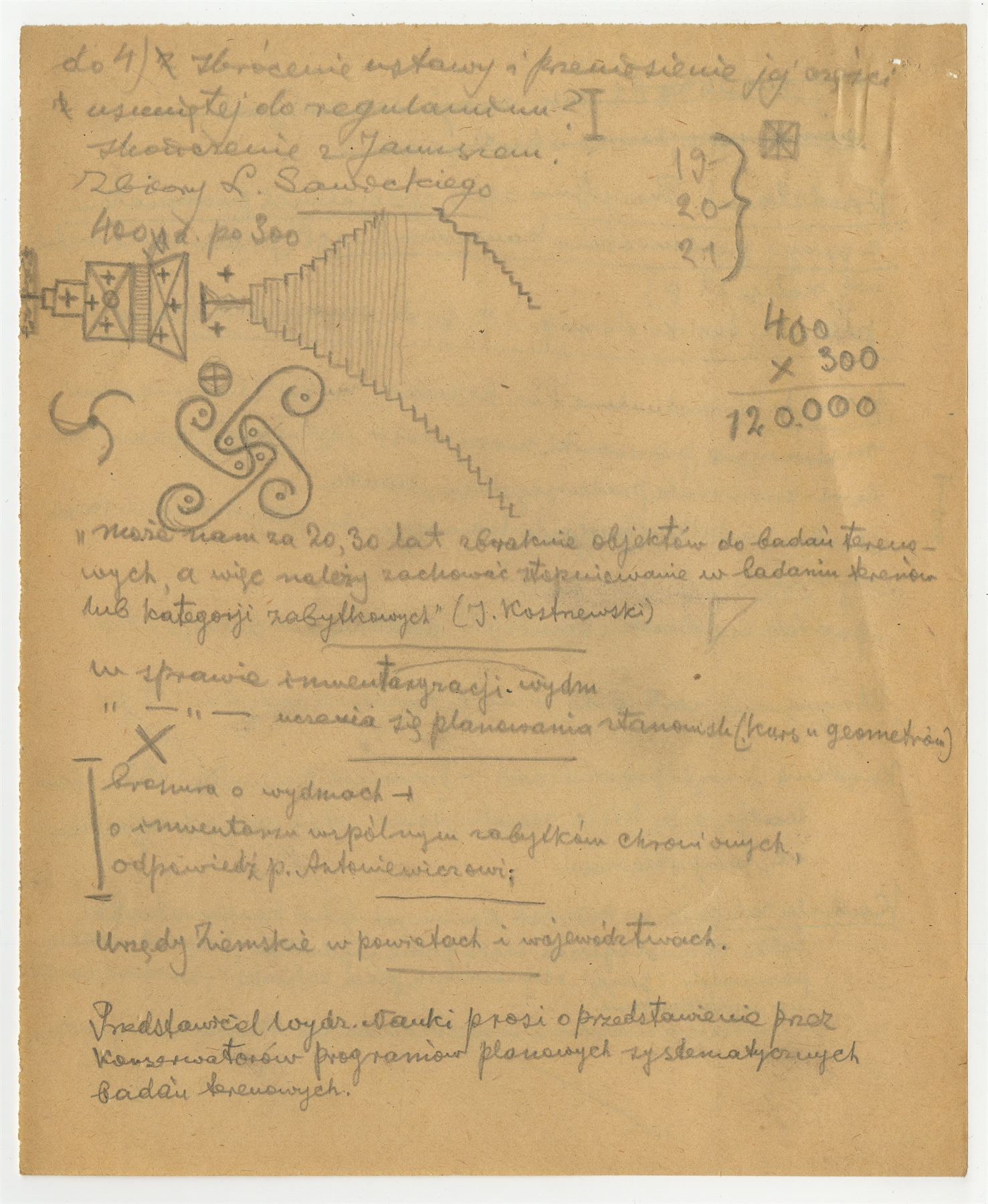 Rękopis - brudnopis planu konferencji Państwowego Grona Konserwatorów Zabytków Przedhistorycznych w Poznaniu dnia 11 marca 1922 r. - strona 4: "(…) do 4) skrócenie ustawy i przeniesienie jej części (…)"