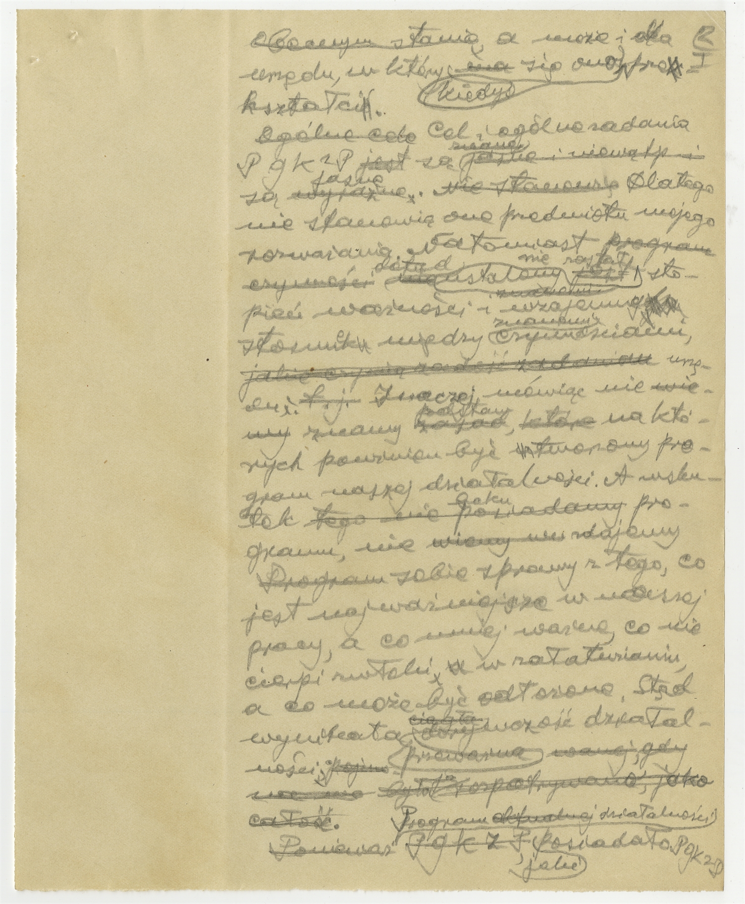 Rękopis - brudnopis pracy "Naturalne wzajemne ustosunkowanie czynności PGKZP jako podstawa działalności tego urzędu (Referat dla użytku PGKZP i jego zwierzchności)" - strona 2: "(…) a może i dla urzędu w który się ono kiedyś przekształci (…)"