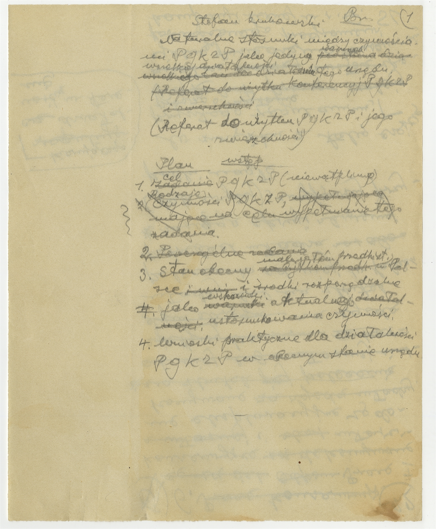 Rękopis - brudnopis pracy "Naturalne wzajemne ustosunkowanie czynności PGKZP jako podstawa działalności tego urzędu (Referat dla użytku PGKZP i jego zwierzchności)" - strona 23: "Plan"
