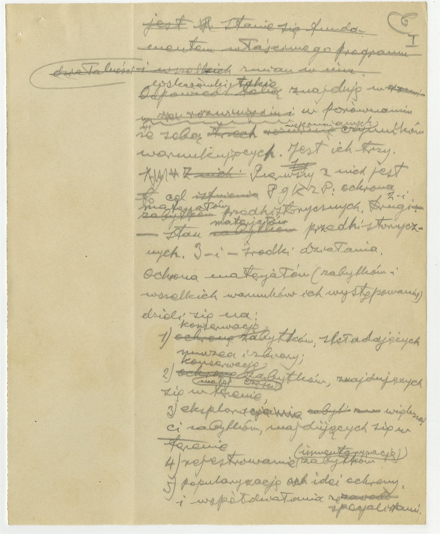 Rękopis - brudnopis pracy "Naturalne wzajemne ustosunkowanie czynności PGKZP jako podstawa działalności tego urzędu (Referat dla użytku PGKZP i jego zwierzchności)" - strona 6: "(…) Wskazówki takie znajdują się w porównaniu ze sobą (…)"