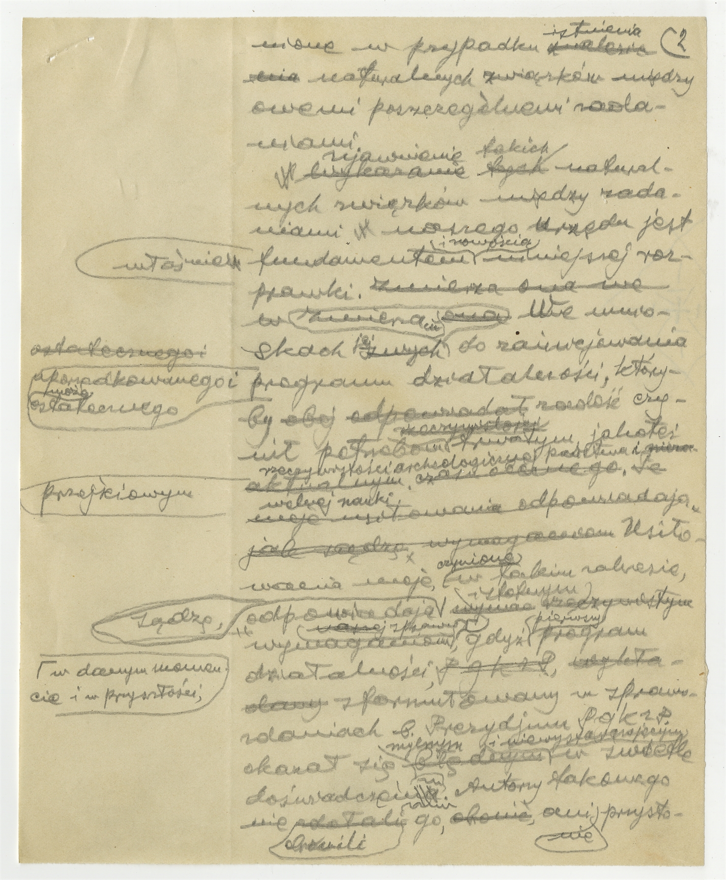 Rękopis - brudnopis pracy "Pragram działalności PGKZP" - strona 2: "(…) w przypadku istnienia naturalnych związków (…)"