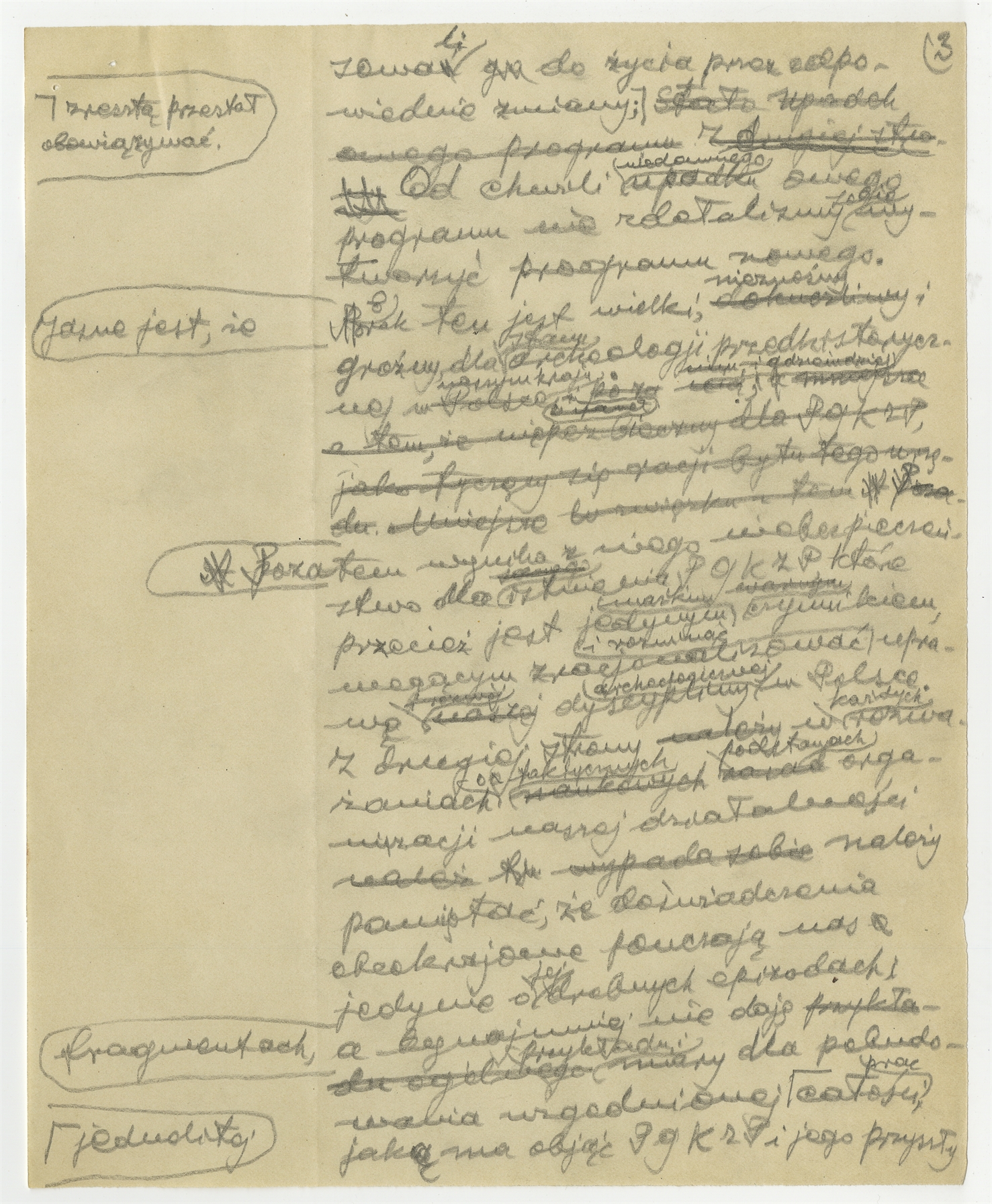 Element 3 - Rękopis - brudnopis pracy "Pragram działalności PGKZP" (wersja 2) - strona 3: "(…) do życia przez odpowiednie zmiany (…)"