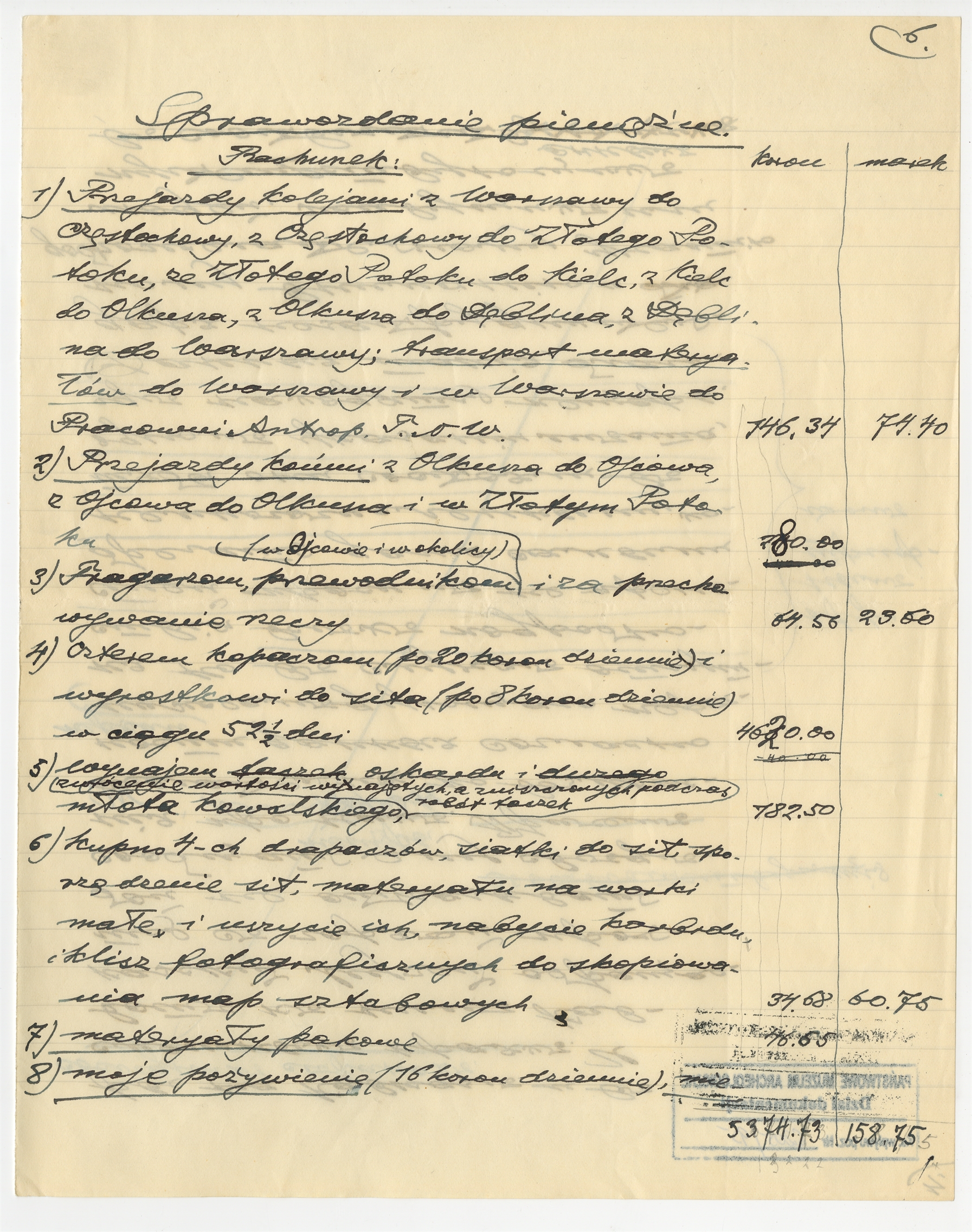 Rękopis-brudnopis sprawozdania prof. Stefana Krukowskiego z badań wykonanych przez prof. w Ojcowie (1918r.) - "Sprawozdanie pieniężne"