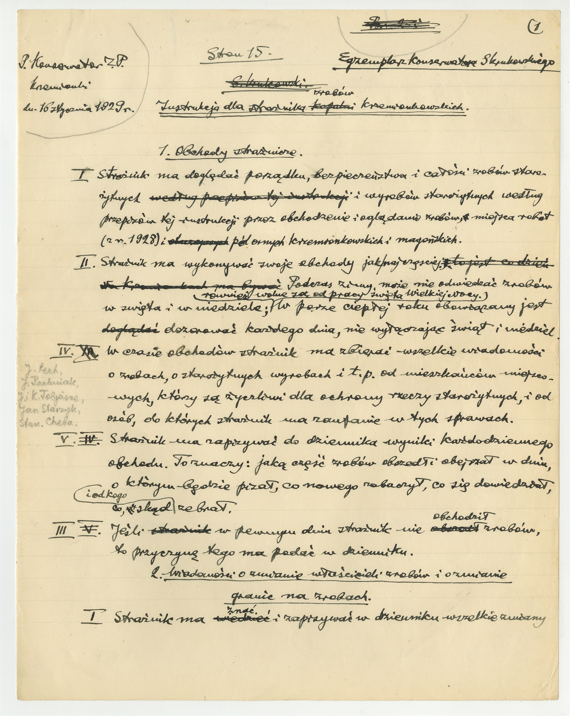 Rękopis - brudnopis Stefana Krukowskiego: "Instrukcja dla strażnika zrobów krzemionkowskich" - strona 1