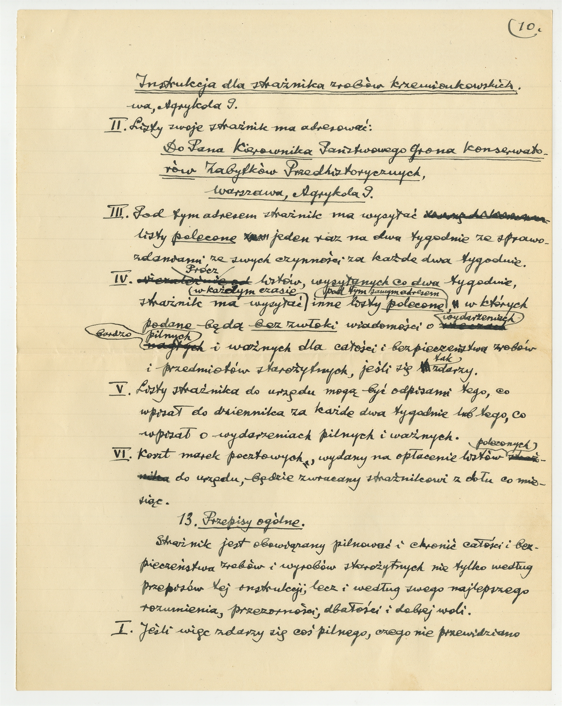 Rękopis - brudnopis Stefana Krukowskiego: "Instrukcja dla strażnika zrobów krzemionkowskich" - strona 10