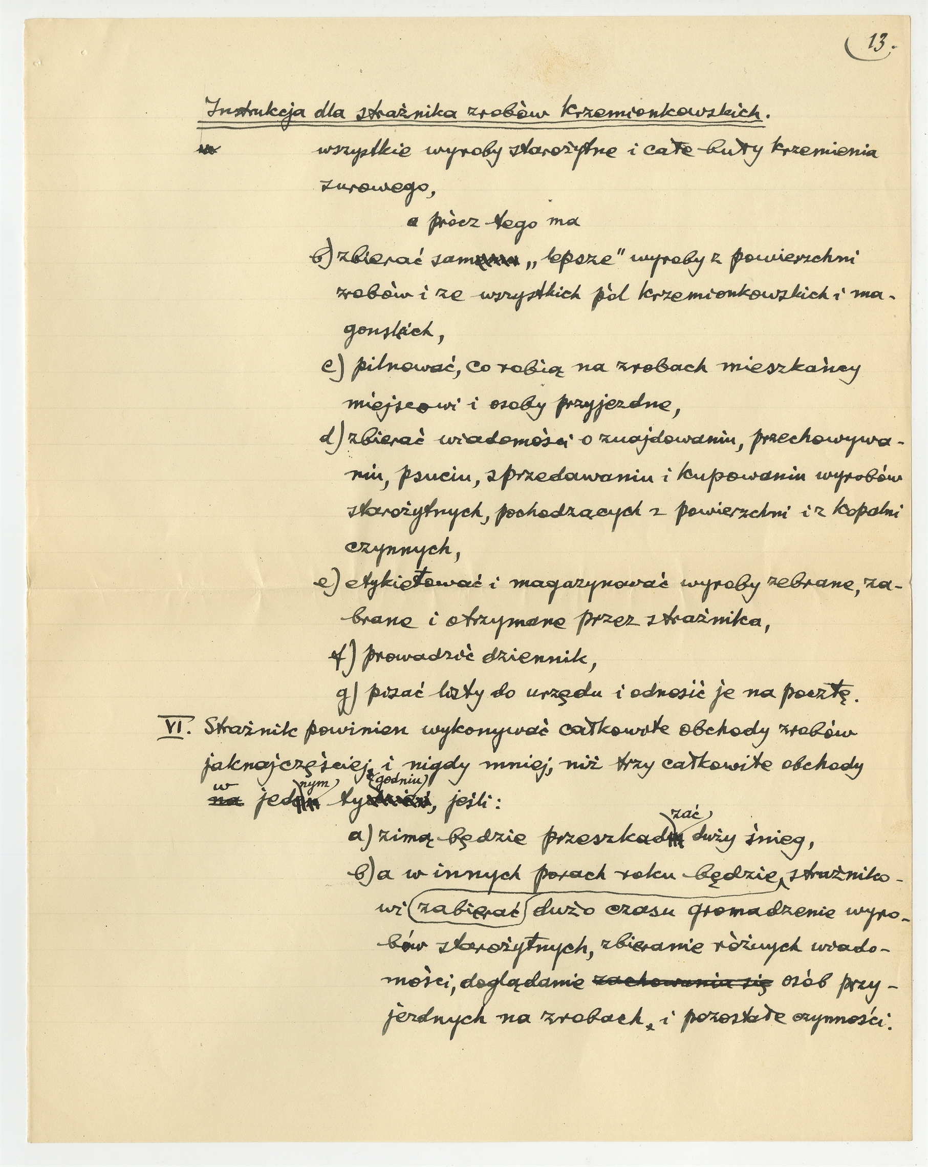 Rękopis - brudnopis Stefana Krukowskiego: "Instrukcja dla strażnika zrobów krzemionkowskich" - strona 13