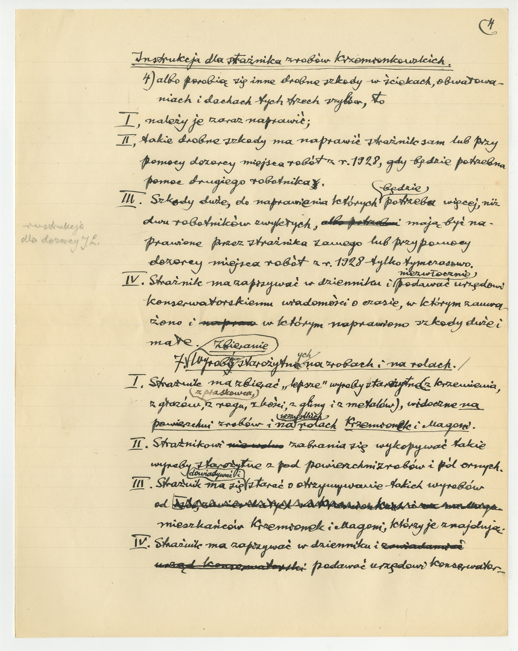 Rękopis - brudnopis Stefana Krukowskiego: "Instrukcja dla strażnika zrobów krzemionkowskich" - strona 4