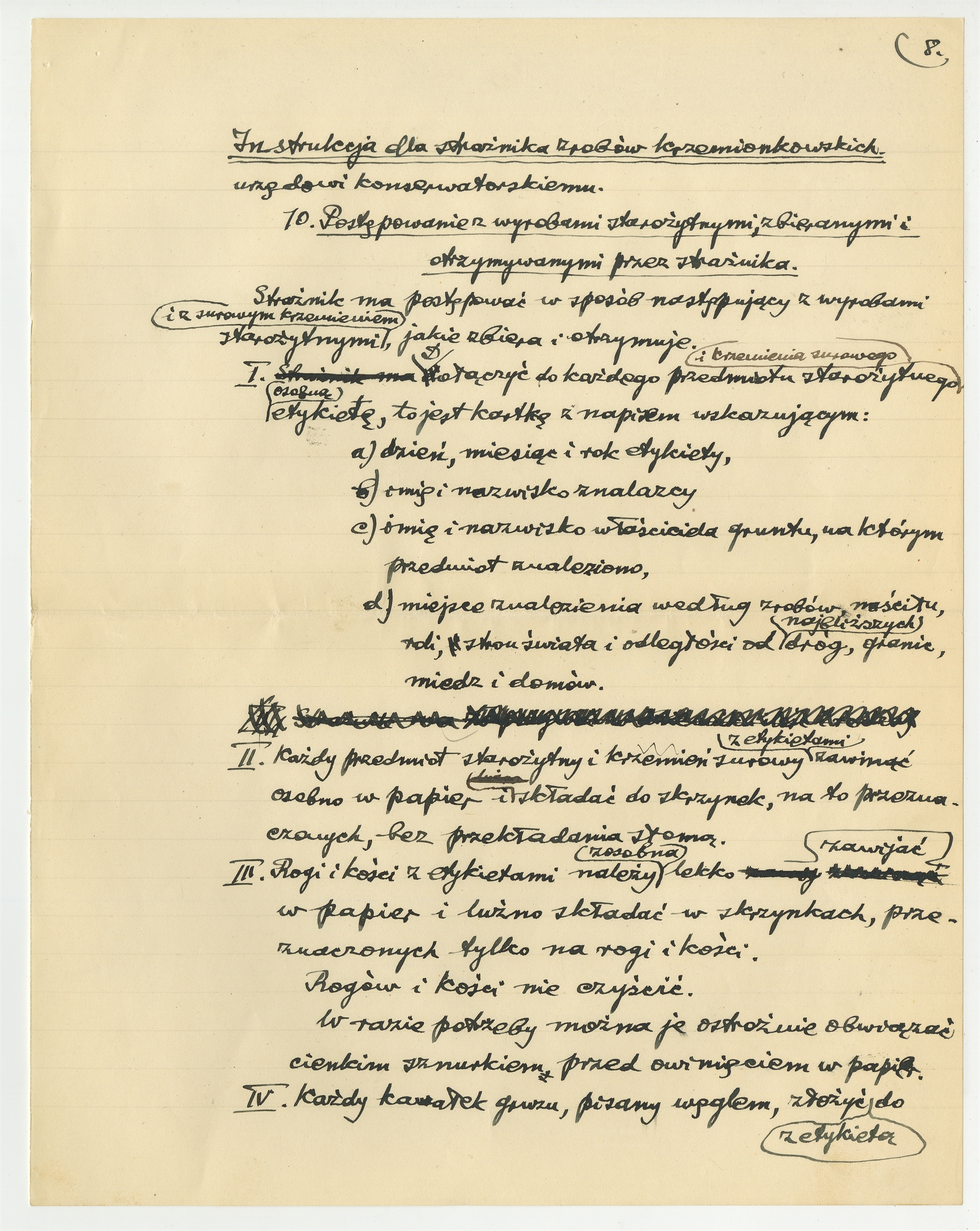 Rękopis - brudnopis Stefana Krukowskiego: "Instrukcja dla strażnika zrobów krzemionkowskich" - strona 8