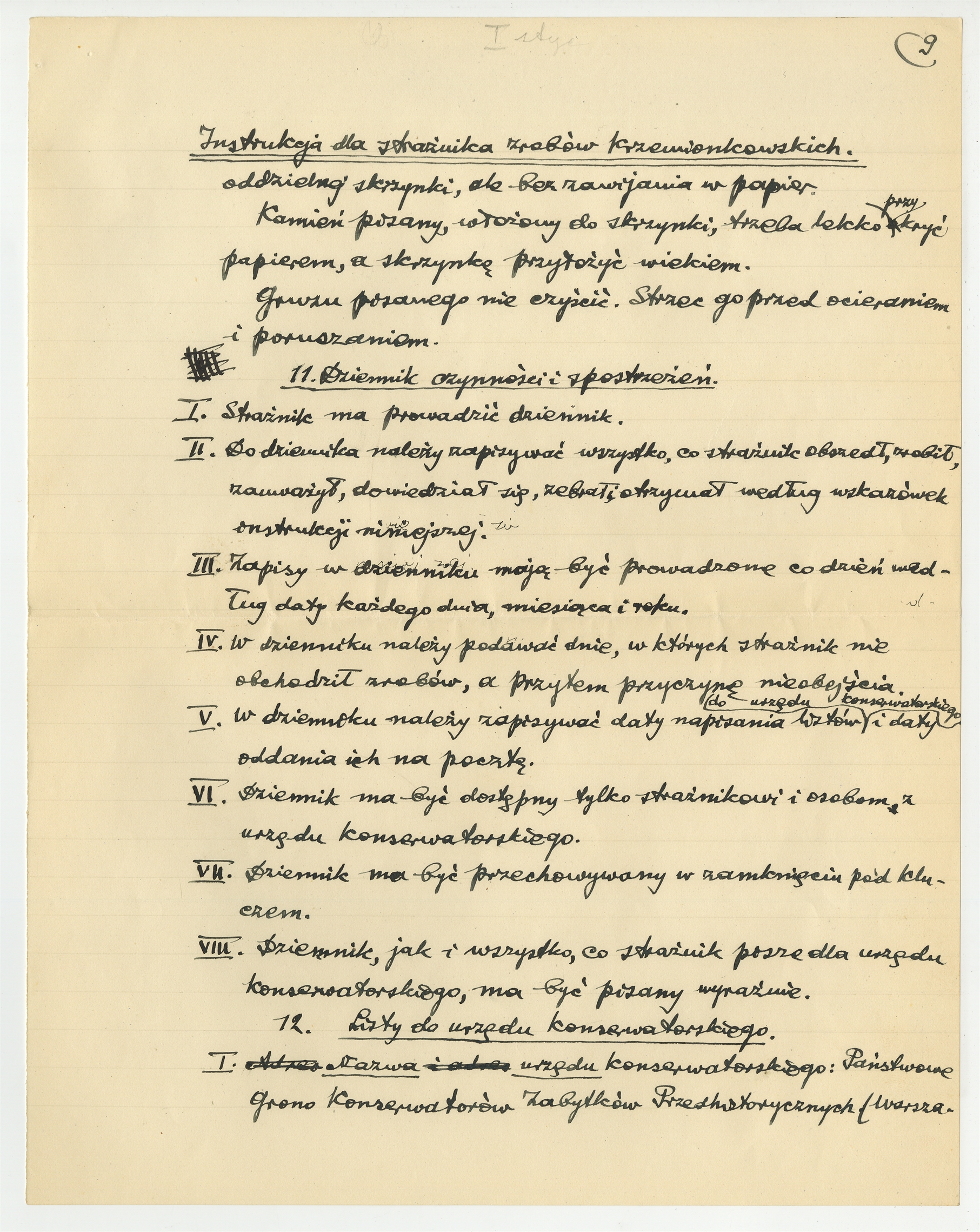 Rękopis - brudnopis Stefana Krukowskiego: "Instrukcja dla strażnika zrobów krzemionkowskich" - strona 9