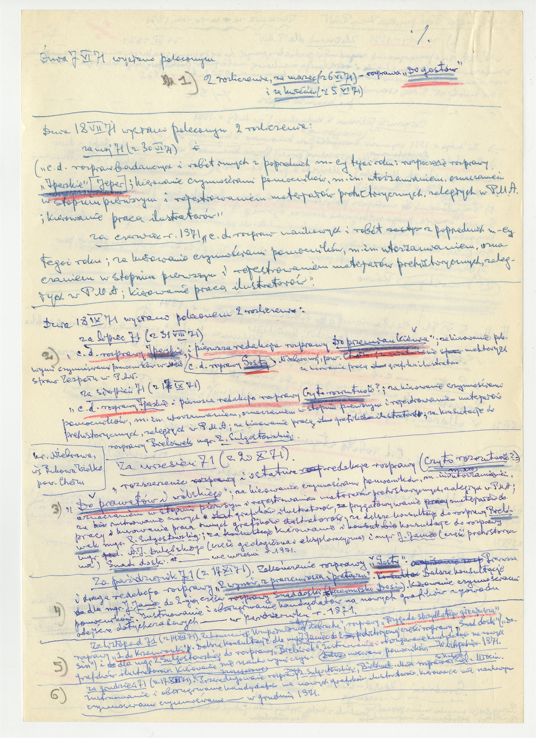 Rękopis - brudnopis wyliczeń/finansowych podsumowań S. Krukowskiego zatytułowany "Zliczenia za m-ce roku 1971" oraz "Zestawienie o robienu rozpraw w r. 1971" - strona 2: "Dwa 7 VI 71 wysłano poleconym" … "w grudniu 1971" (bez numeru strony)