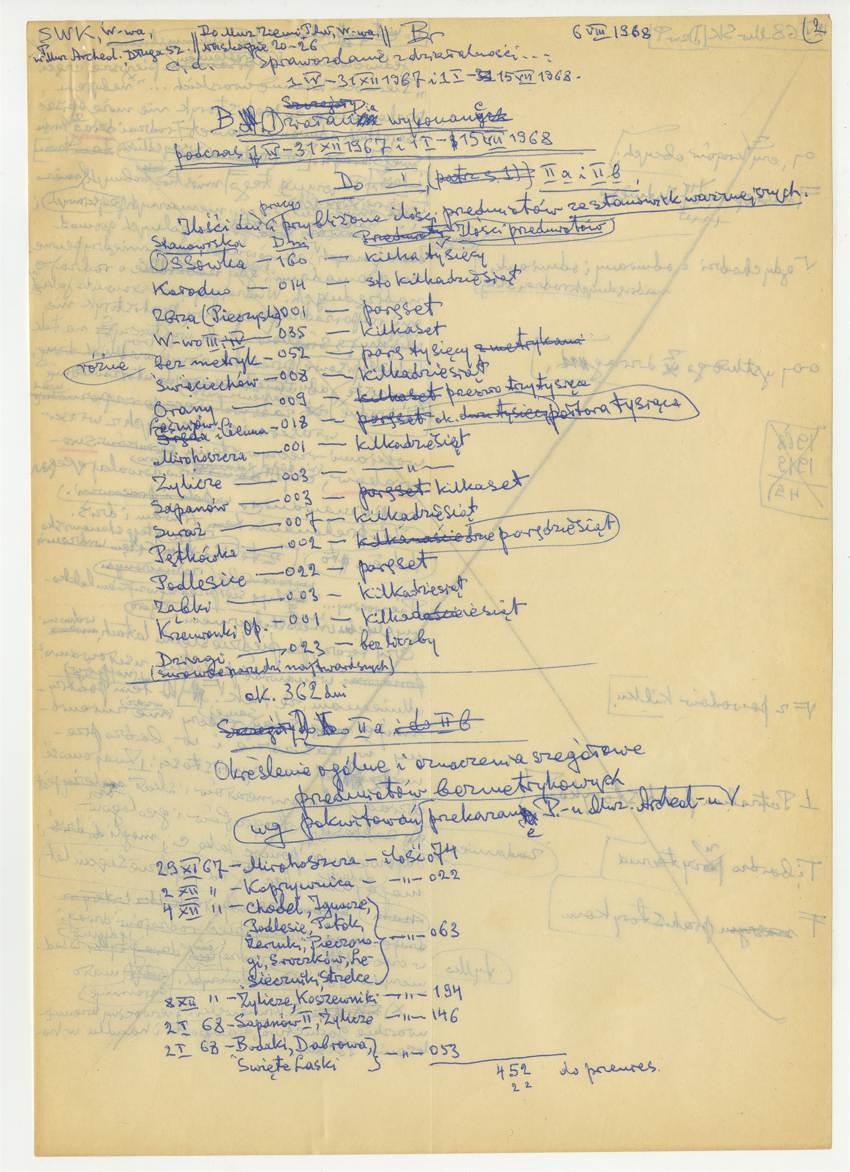 Rękopis brudnopisu sprawozdania S. Krukowskiego zatytułowany "Sprawozdanie z działalności (w P.M.A. W-wa Długa 52) naukowej Stefana W. Krukowskiego" - cd. - strona 2: zatytułowana "Sprawozdanie z działalności … / 1 IV - 31 XII 1967 i 1 I - 15 VII 1968 6 VIII 1968 (autorska strona 2)