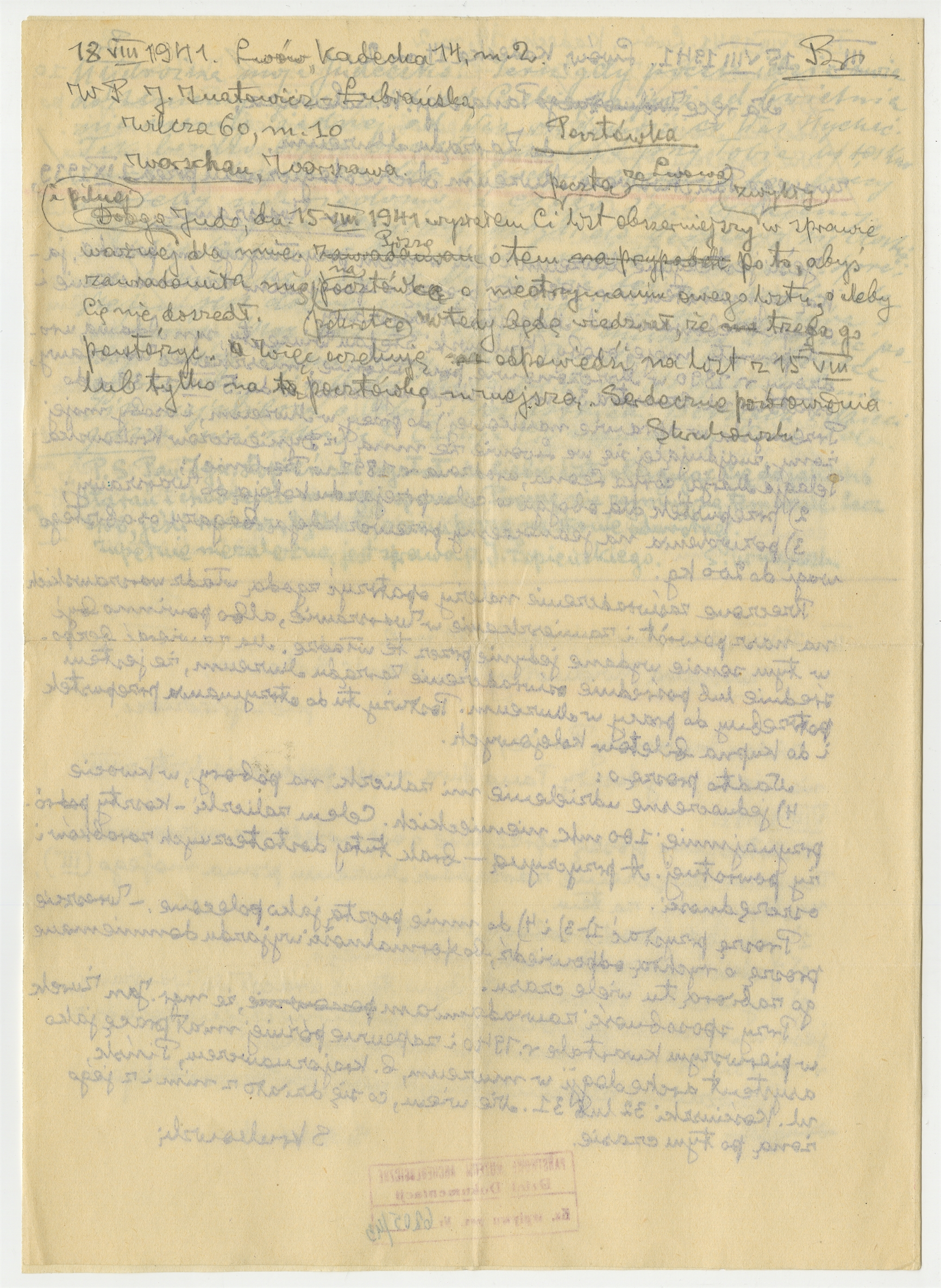 Rękopis - brudnpis listu Stefana Krukowskiego z dnia 18 VIII 1941 roku do J. Inatowicz-Łubiańskiej
