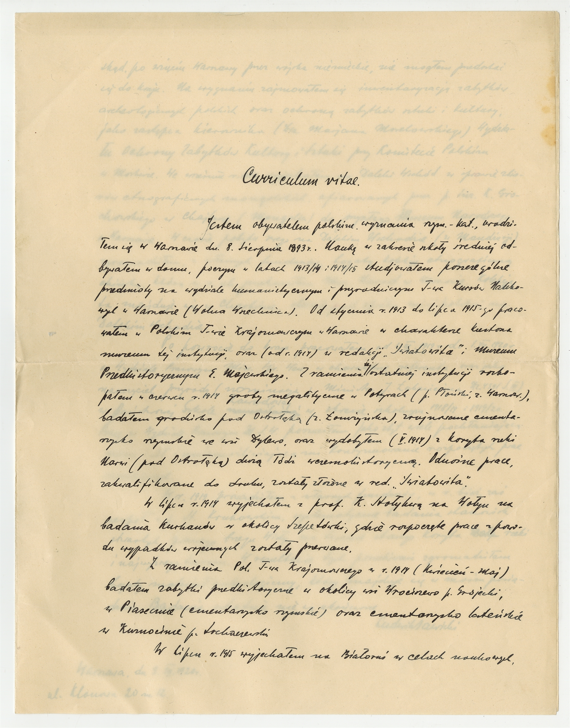 Rękopis - Curriculum vitae Ludwika Sawickiego z dnia 3 VII 1920 roku