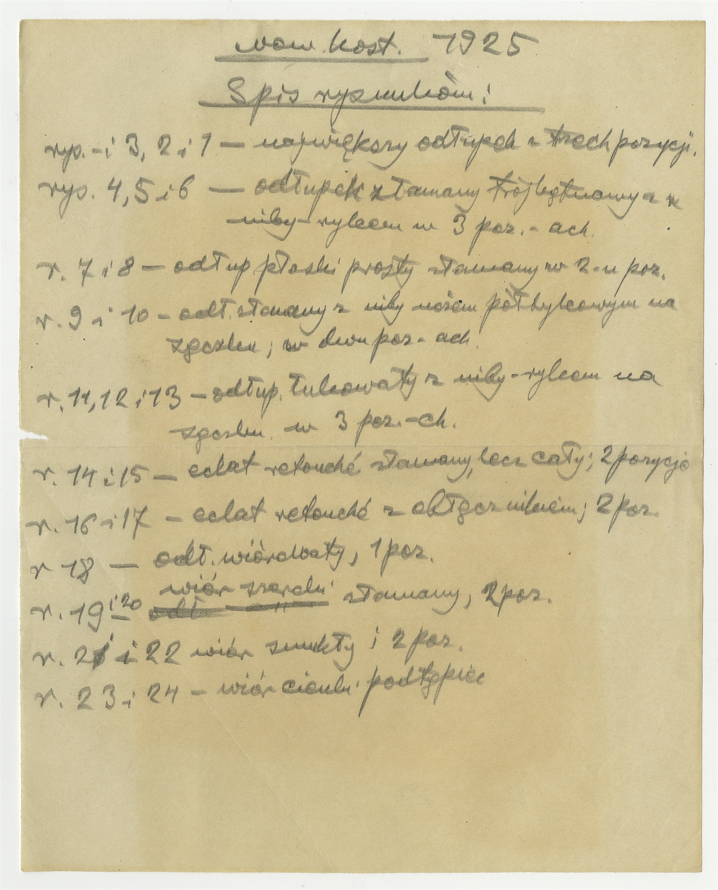 Rękopis części pracy zatytułowanej "II. Część prahistoryczna" wchodzącej w skład opracowania S. Krukowskiego oraz J. Polańkiego pt. "Pierwsze stanowisko paleolityczne w Nowosiółce Kostiukowej (Podole)" - strona 57: "Spis rysunków"