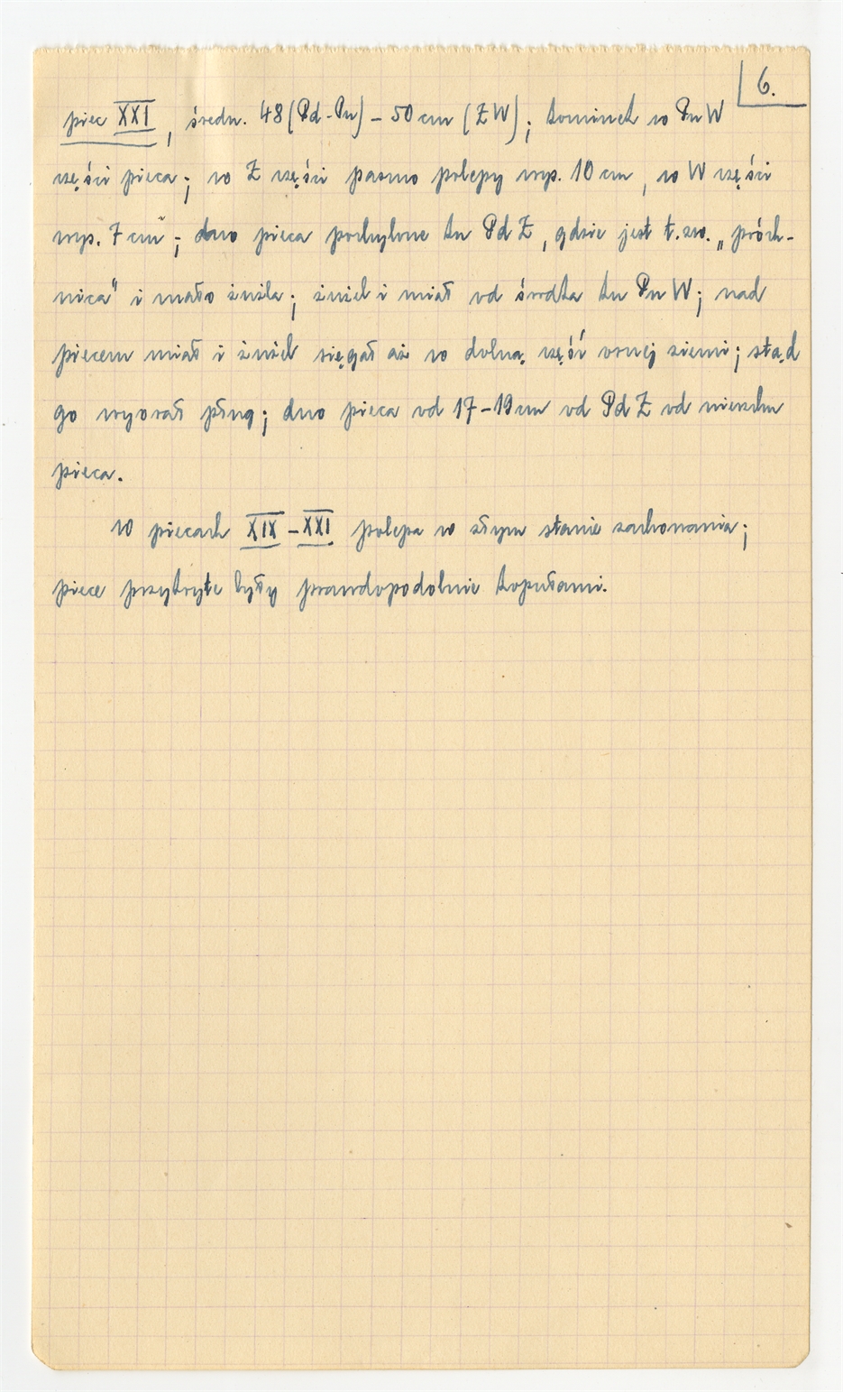 Rękopis - dziennik badań (czystopis) ze stanowiska Skowroniec (Małe Podgaje hucisko na polu gosp. Piotra Gąsiora "Przed Gienią") 16-21 IX [19]33 roku. Opisy obiektów. Strona 6