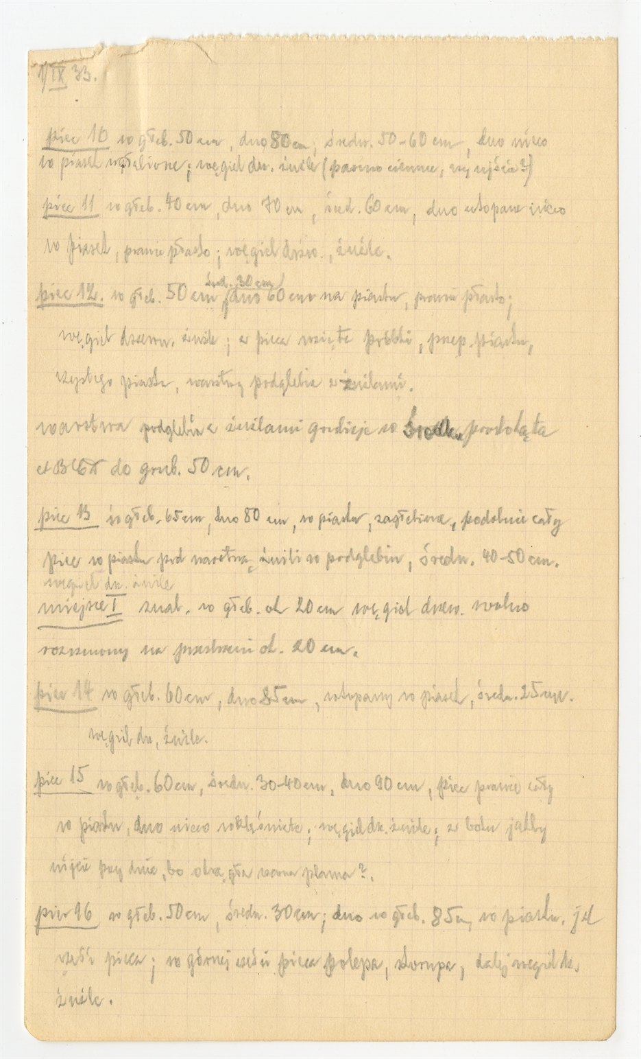 Rękopis - dziennik badań ze stanowiska Skowroniec (Małe Podgaje hucisko "Przemka") notatki z 1 IX [19]33 roku. Opisy warstw i obiektów.