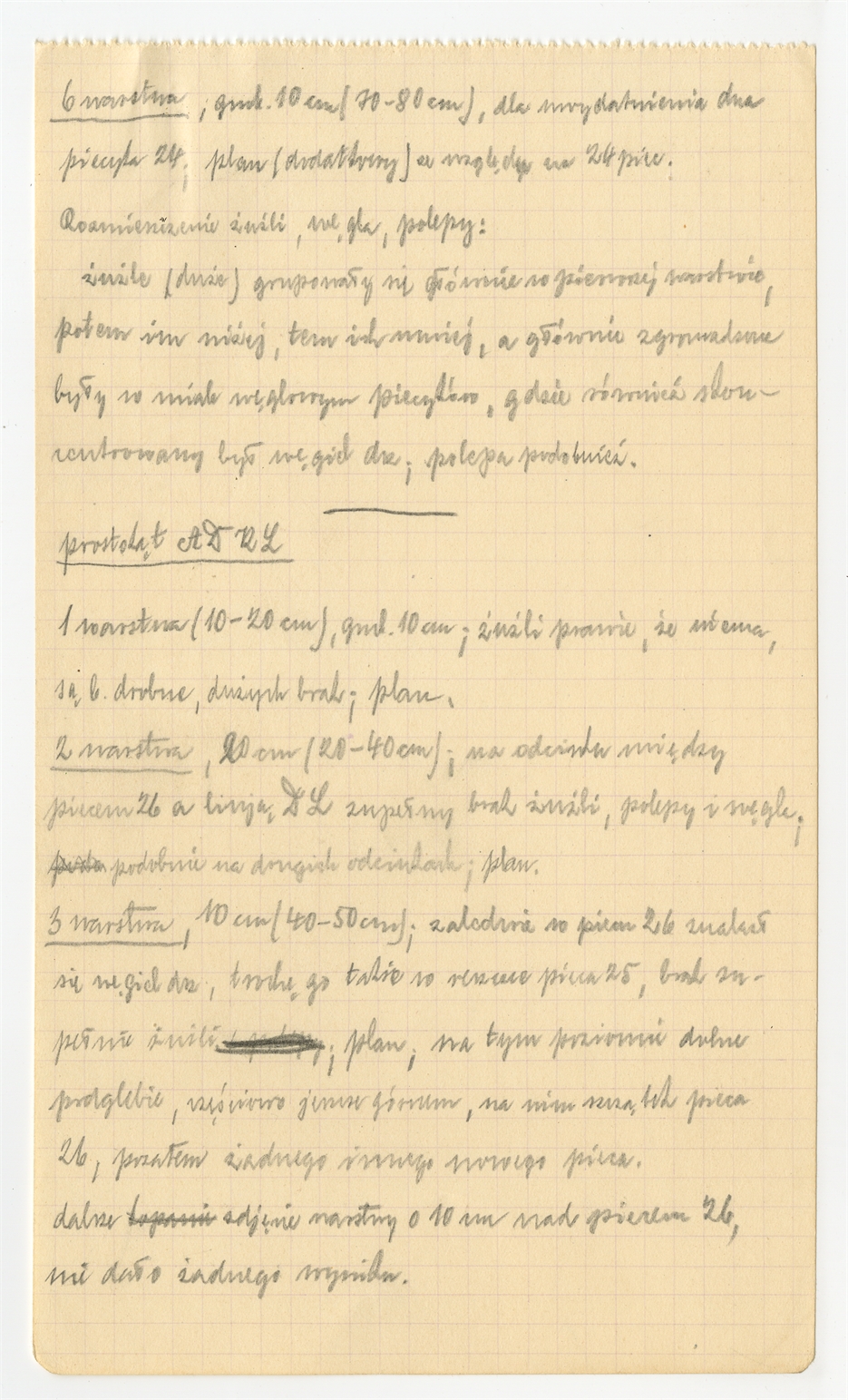 Rękopis - dziennik badań ze stanowiska Skowroniec (Małe Podgaje hucisko "Przemka") notatki z 9 IX [19]33 roku. Opisy warstw i obiektów.