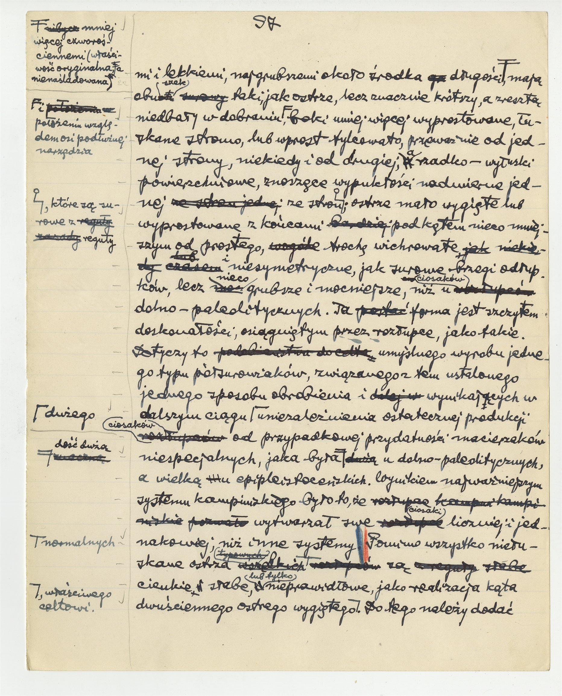 Rękopis fragmentu pracy prof. Stefana Krukowskiego pt.: "Prasiekiery" - Ciosaki niżowo paleolityczne (cd)