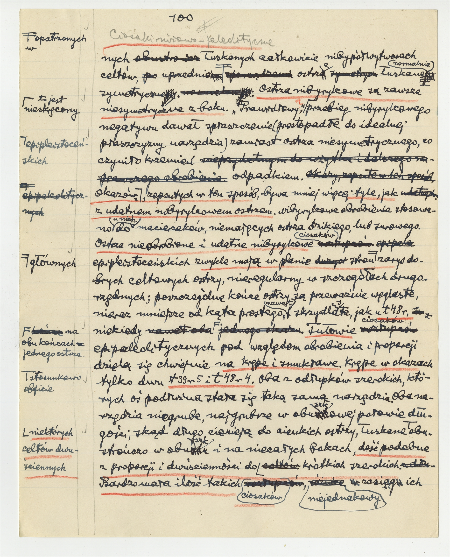 Rękopis fragmentu pracy prof. Stefana Krukowskiego pt.: "Prasiekiery" - Ciosaki niżowo paleolityczne (cd)