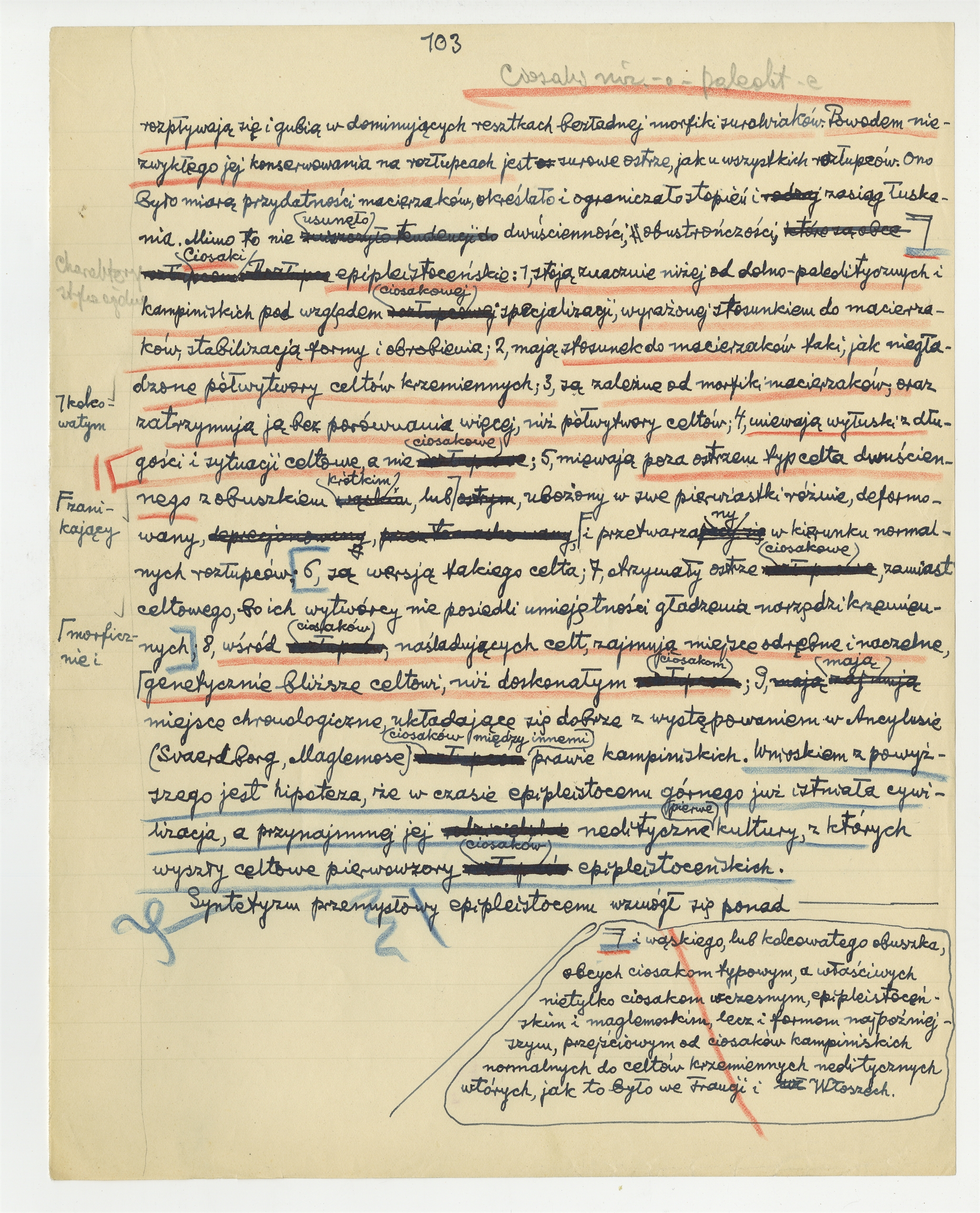 Rękopis fragmentu pracy prof. Stefana Krukowskiego pt.: "Prasiekiery" - Ciosaki niżowo paleolityczne (cd)