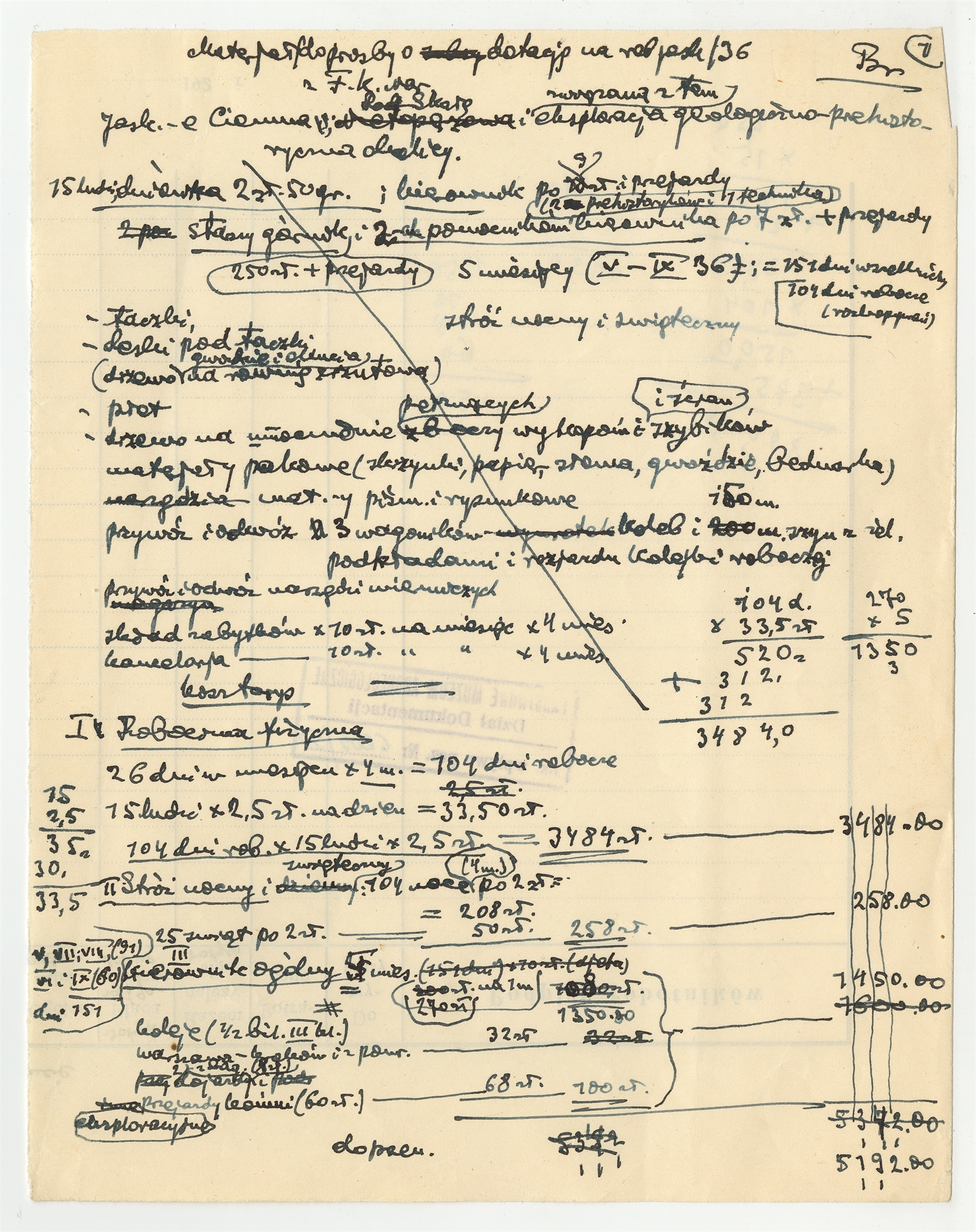 Rękopis - kosztorys Stefana Krukowskiego dołączony do listu - brudnopisu do Zarządu Funduszu Kultury Narodowej przy Prezydium Rady Ministrów z dn. 14 III 1936 r. opisany nr 1
