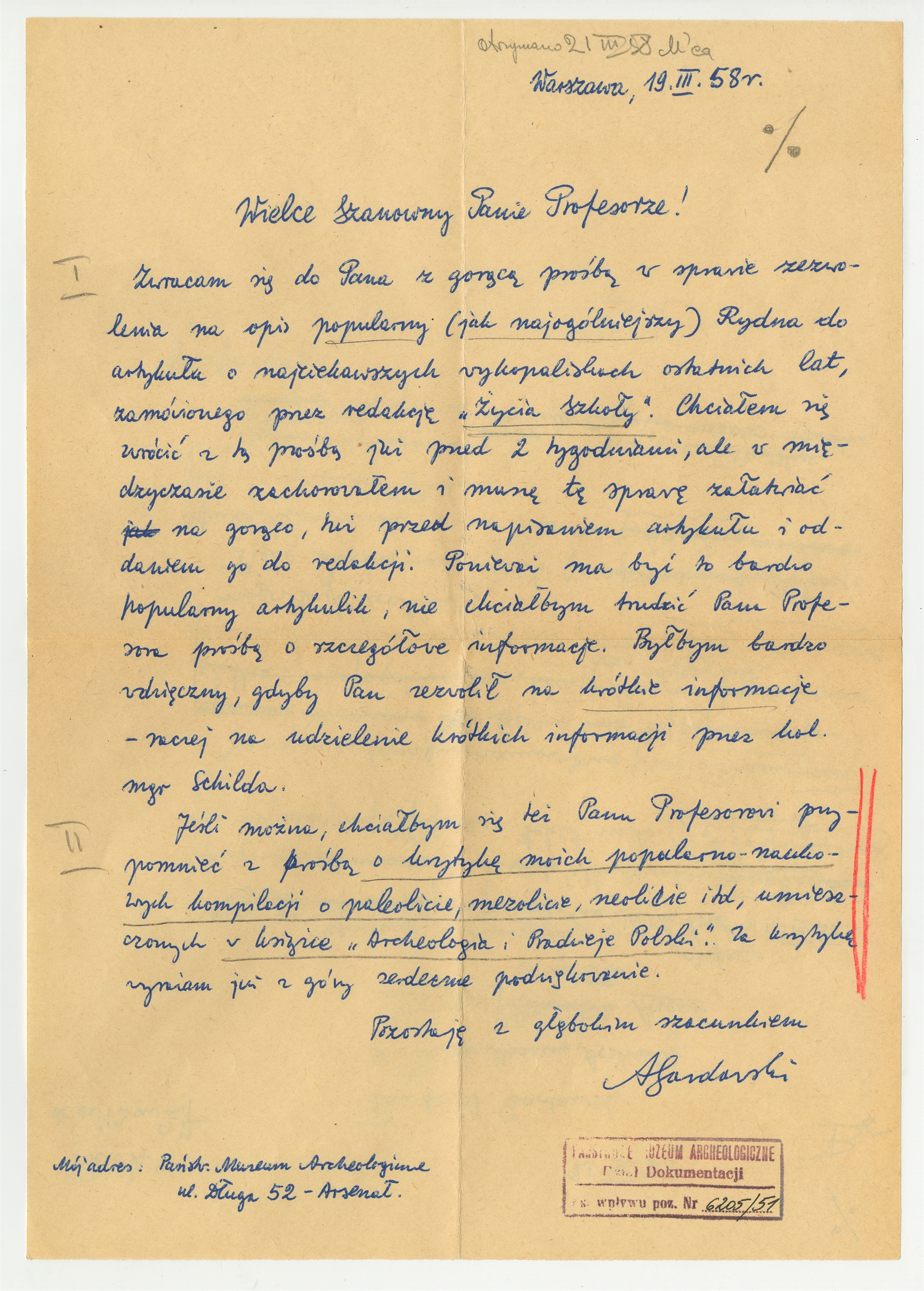 Rękopis - list Aleksandra Gardawskiego do Stefana Krukowskiego z dnia 19 III [19]58 roku