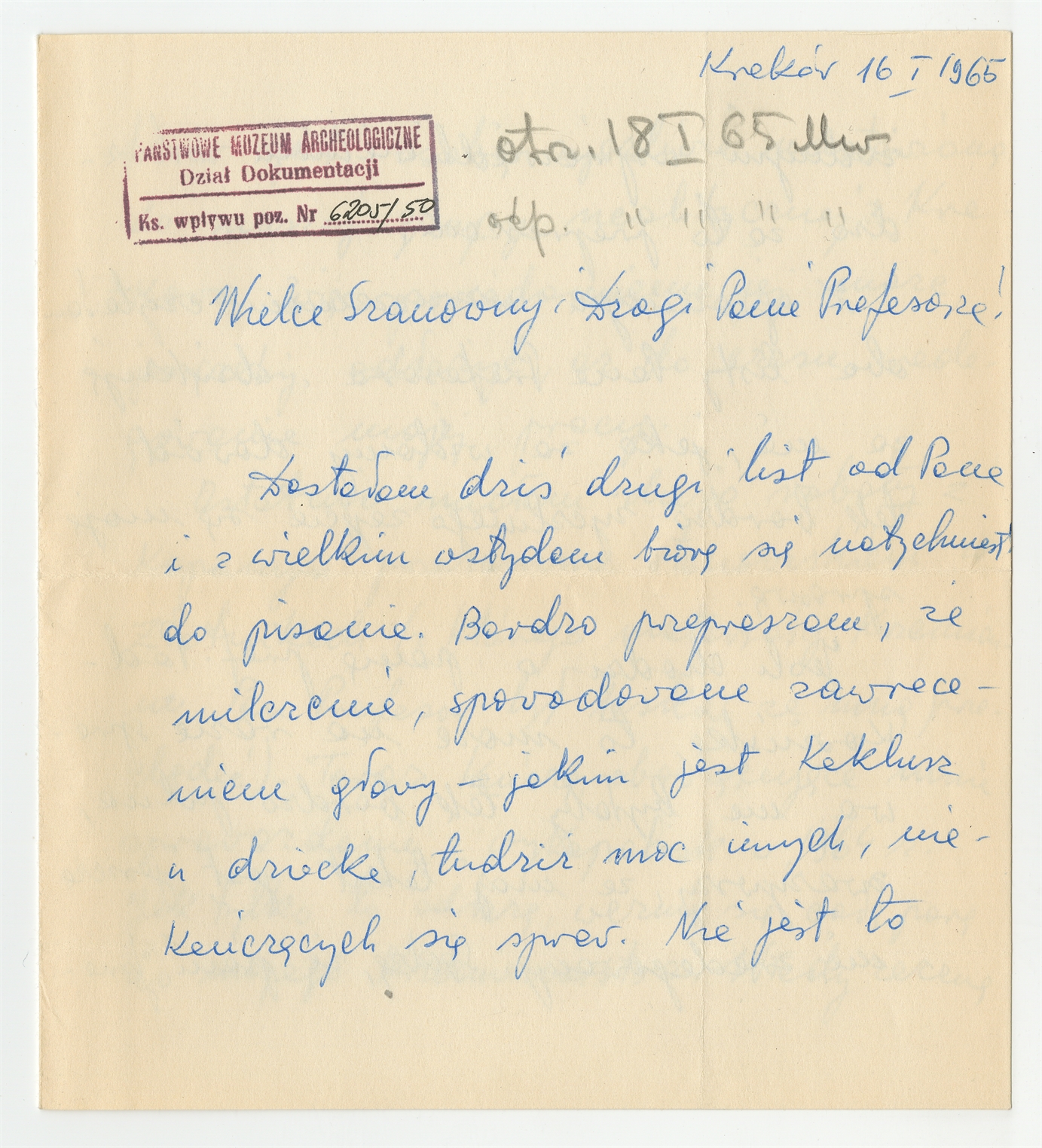 Rękopis - list Anny Dzieduszyckiej-Machnikowej do Stefana Krukowskiego z dn. 16 I 1965 r.